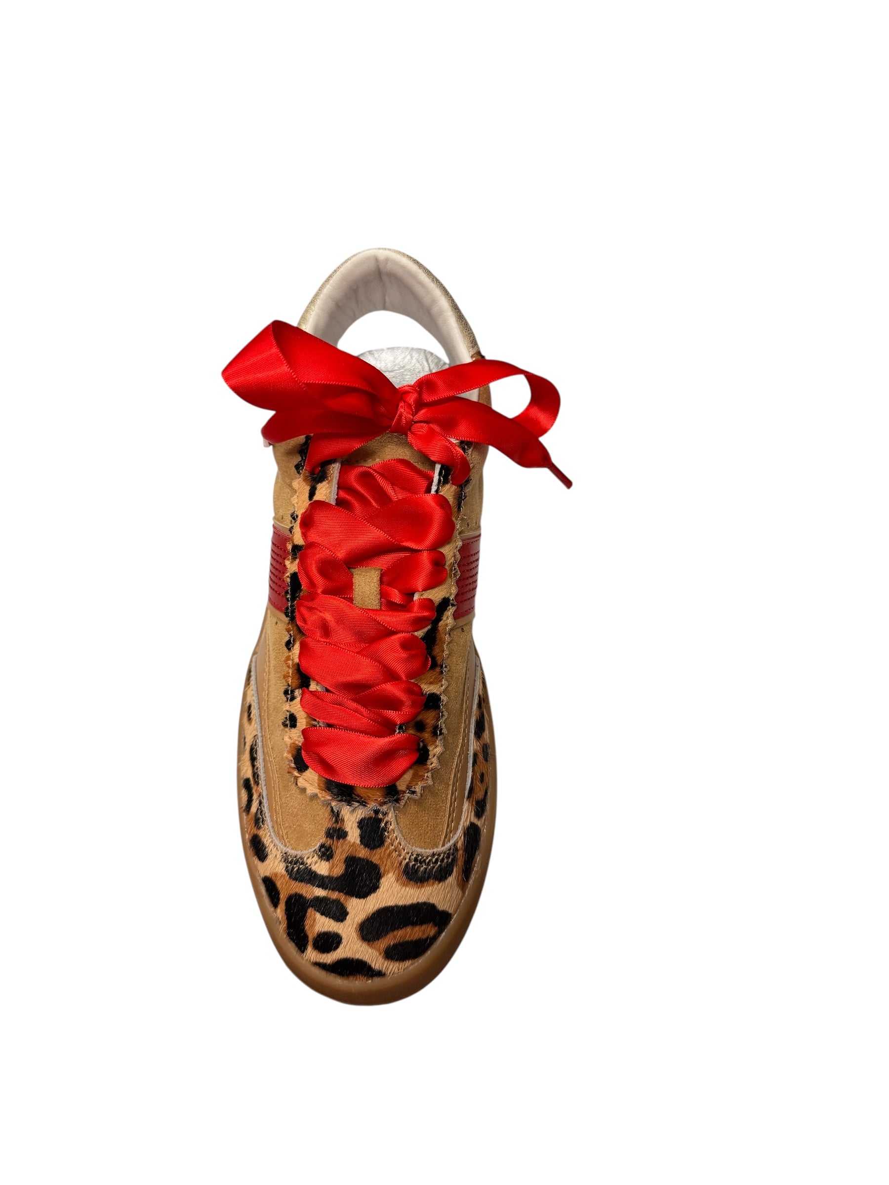 Sand and leopard suede upper with bold red stripe detail