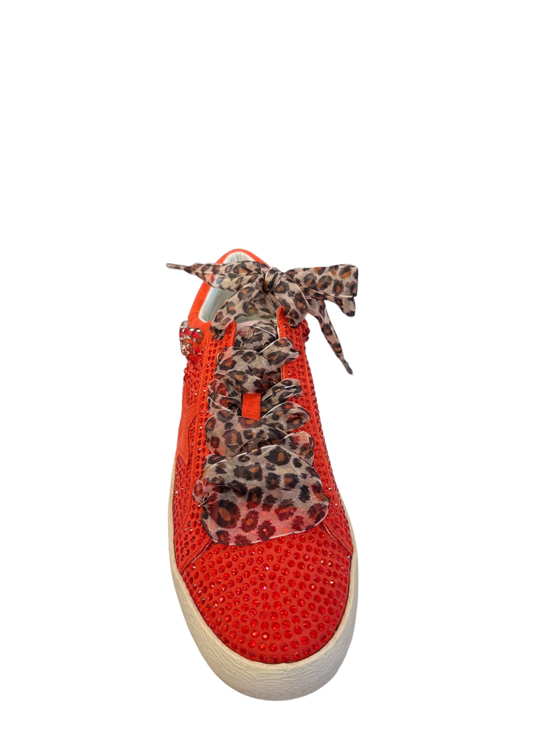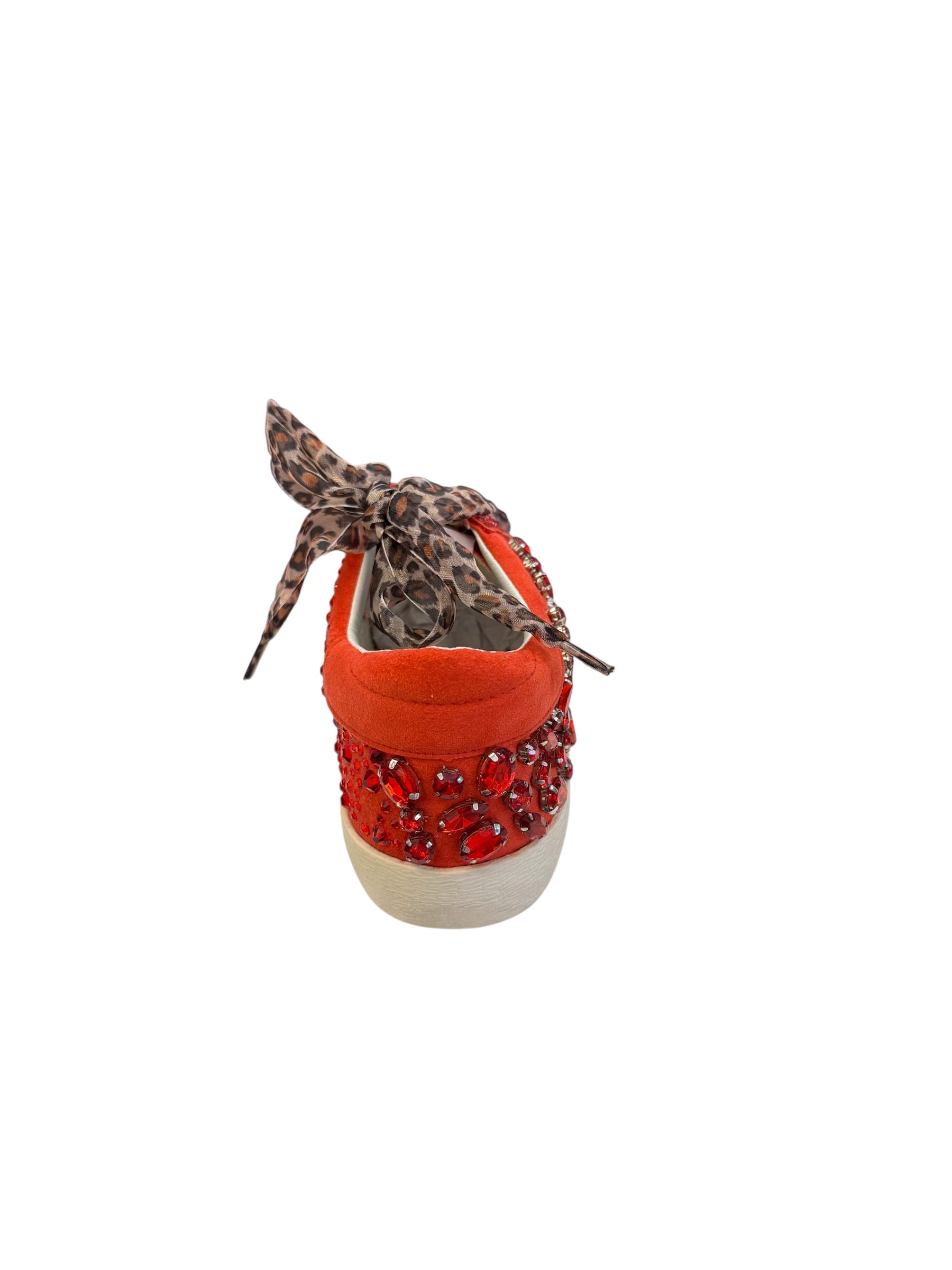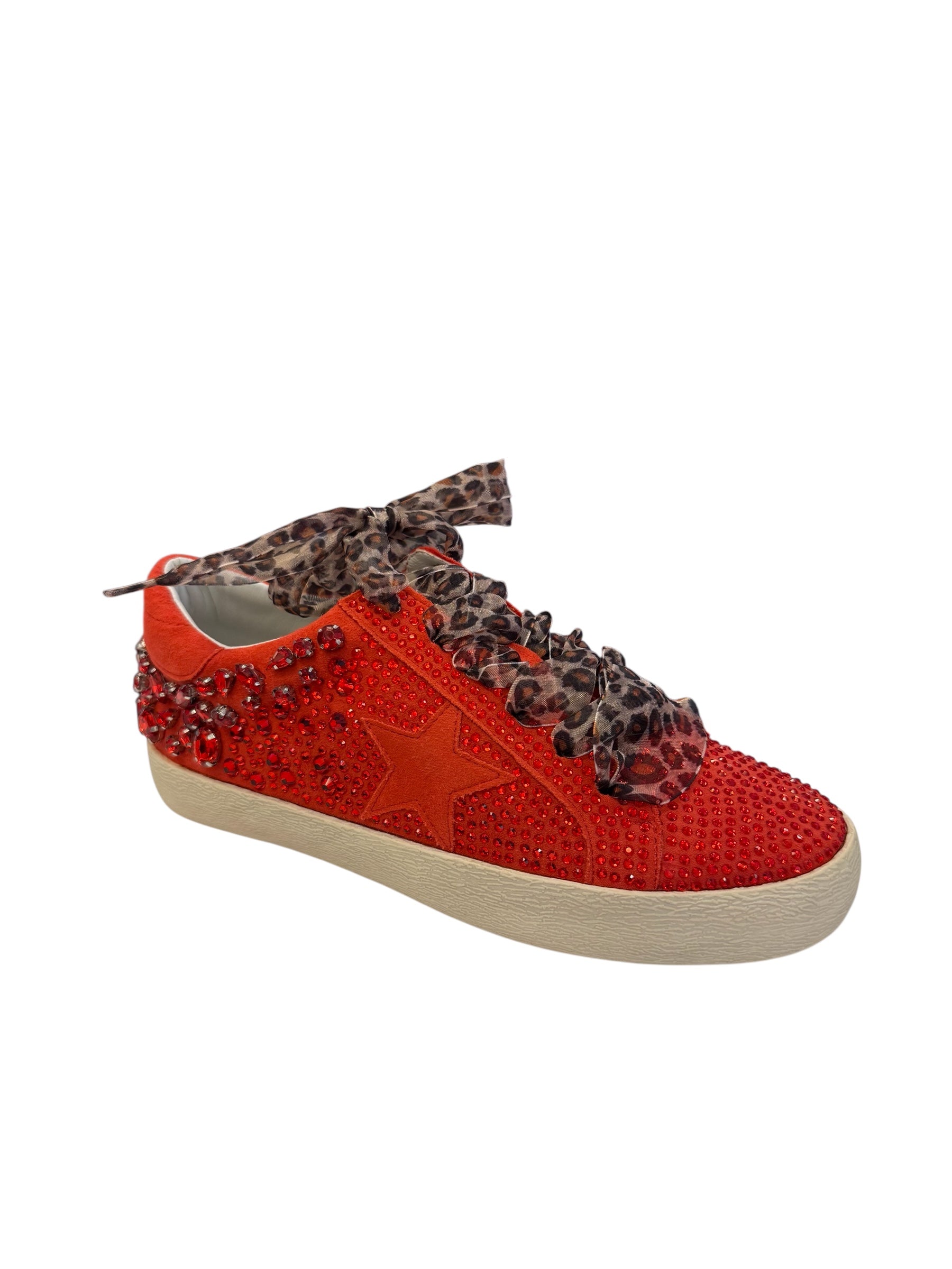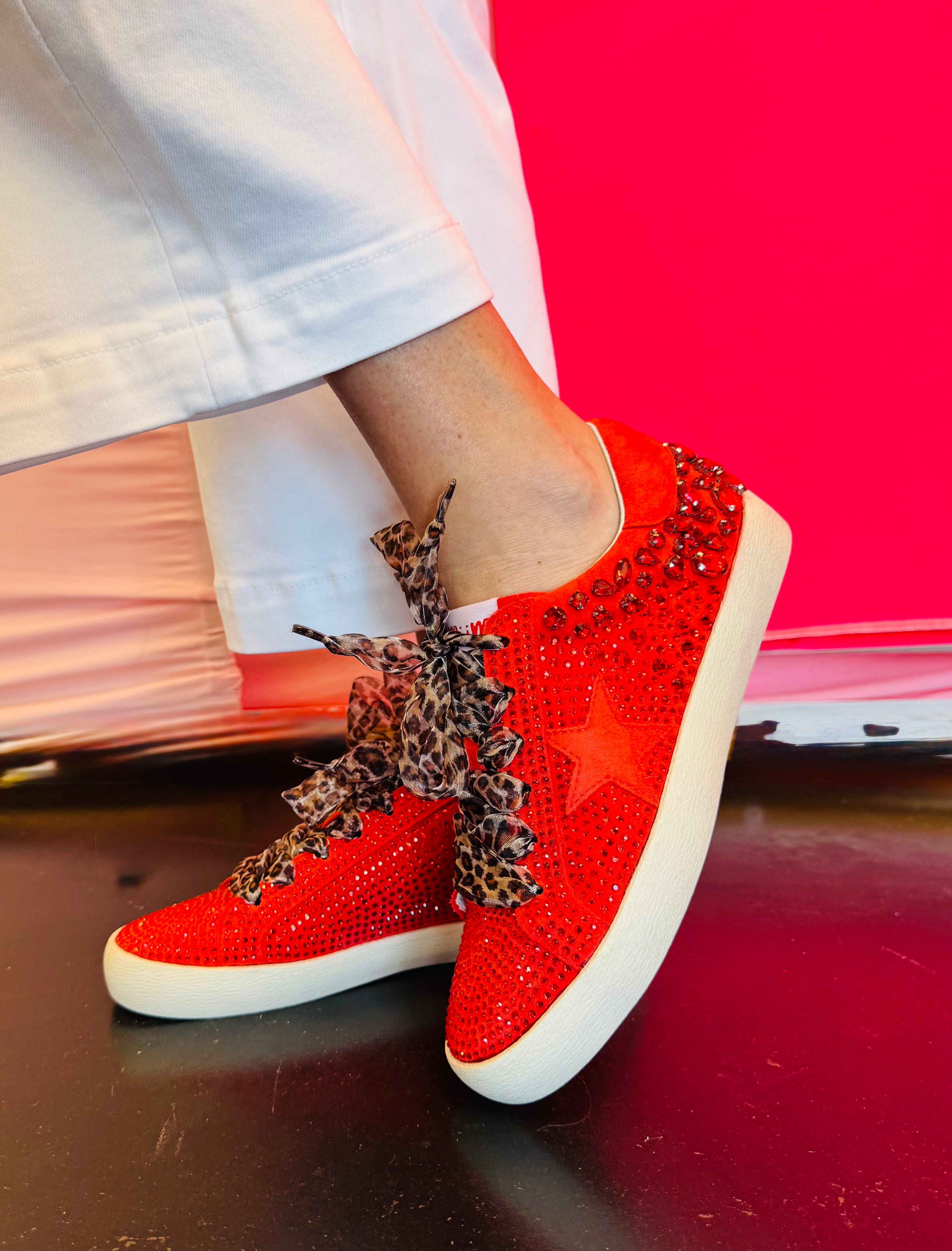Step into sparkle with the GOLDIE – Sparkle and Shine Red Embellished Sneakers. These glam-inspired red sneakers are designed to turn heads with dazzling rhinestone star accents and a sleek, vibrant silhouette. Made with a vegan leather upper and a comfortable synthetic outsole, they’re perfect for everyday wear with a luxe twist. The close round toe, leopard lace-up design, and slight platform heel give you both style and support. Whether you're dressing up denim or adding flair to a casual dress, these red sneakers bring just the right amount of bold shine to your step. Durable, lightweight, and effortlessly stylish, GOLDIE is made for those who love to sparkle wherever they go.