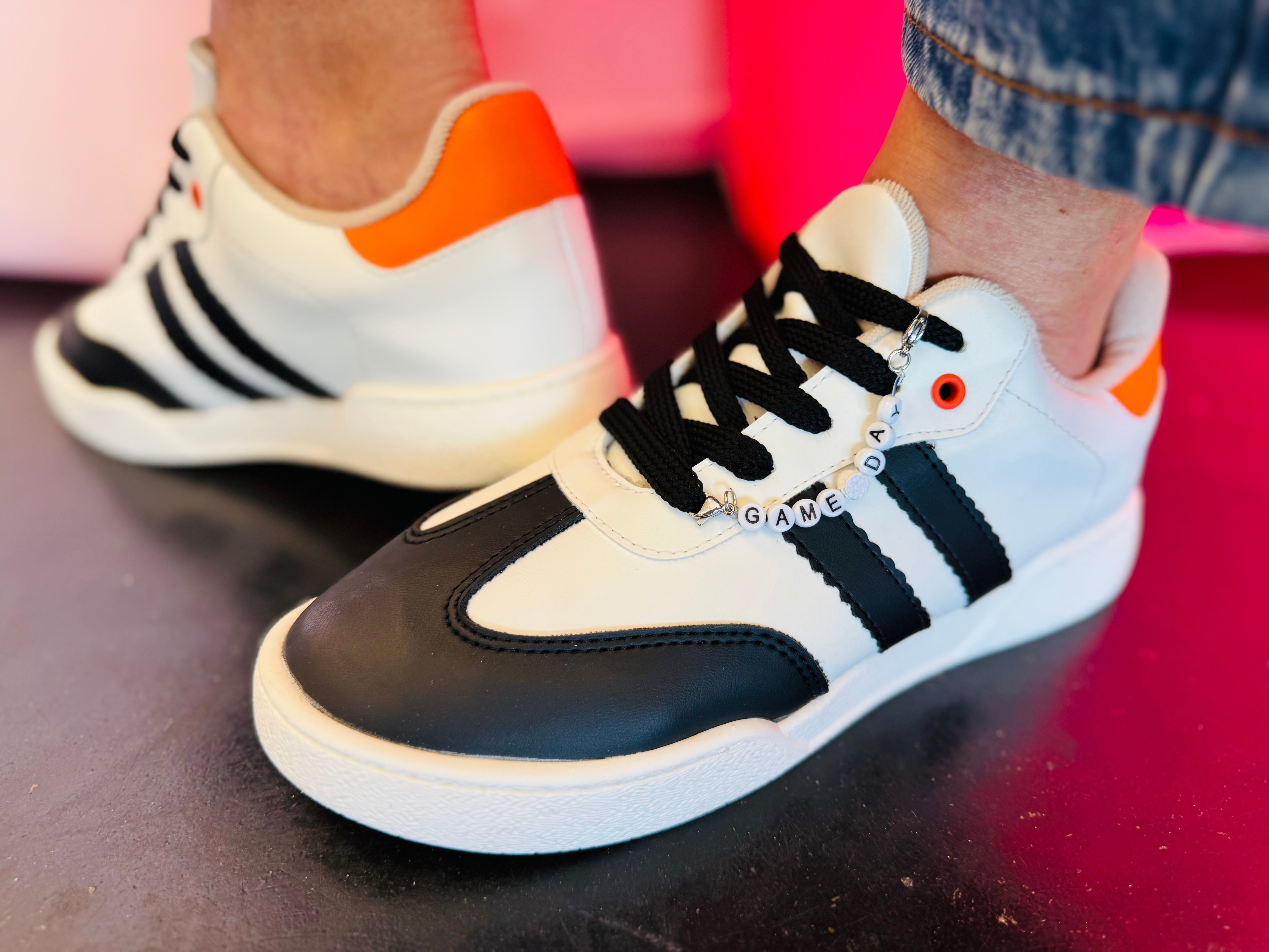Step up your game day style with these must-have sneakers, designed to combine comfort, personality, and team spirit. Crafted with a true-to-size fit and round toe design, they provide all-day wearability whether you’re cheering from the stands, tailgating with friends, or running errands around town. With bold, eye-catching colors and fun details, these sneakers instantly elevate any outfit. The added bonus? Removable charms that bring a playful, customizable touch to your look. Pair them with jeans, joggers, or even your favorite game day dress for a spirited finish that’s both sporty and chic.