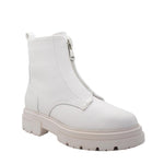 Introducing our luxurious Jupiter White Booties, perfect for the fashion-forward woman. These stunning booties feature a front zipper for easy wear and chunky soles for added comfort and support. Elevate any outfit with their crisp white color. A must-have for any stylish wardrobe.