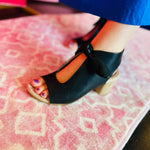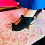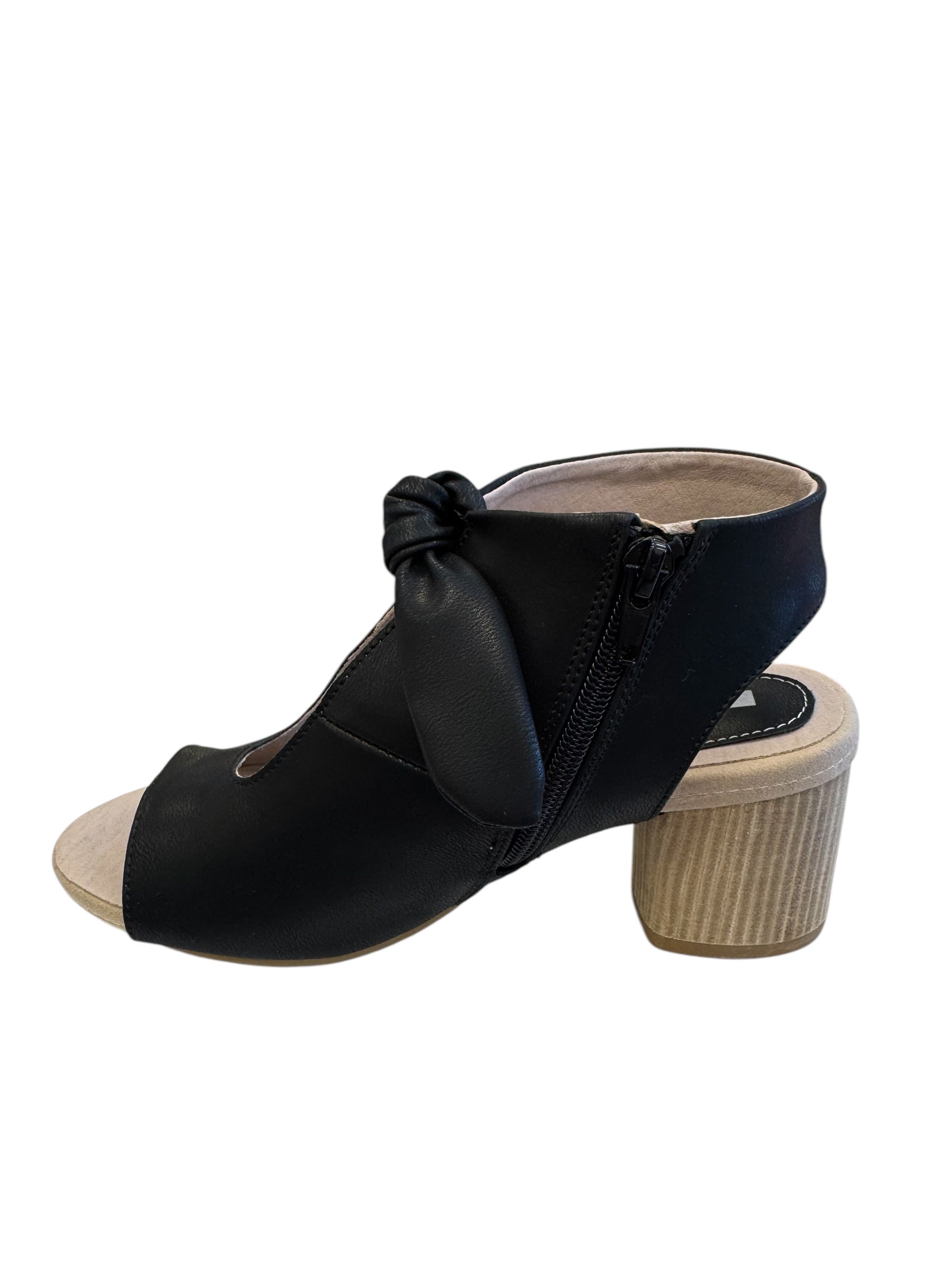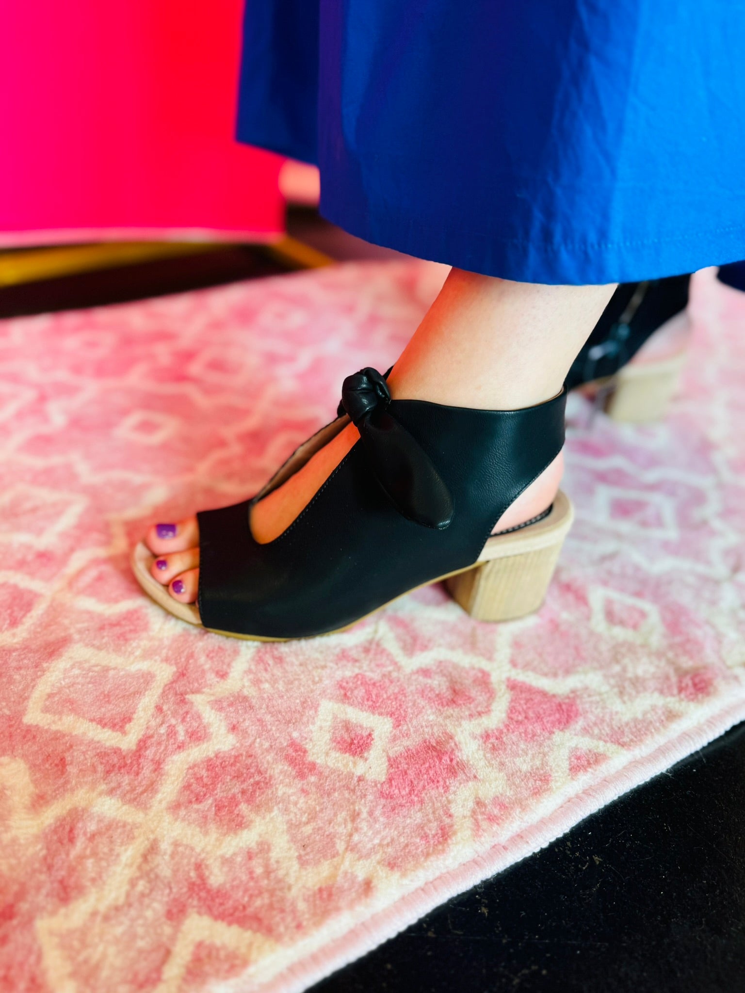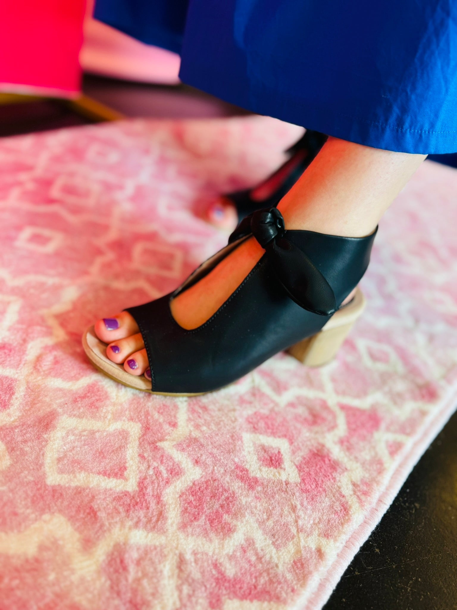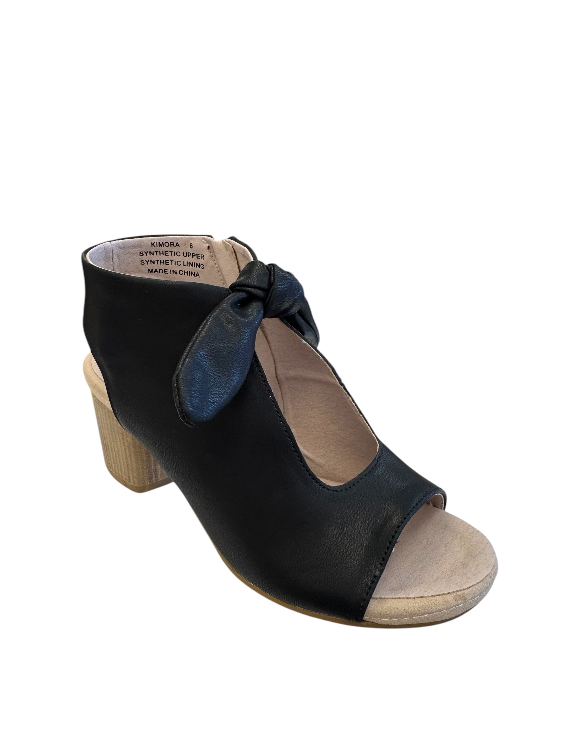 Step out in style with the Kimora Black Shoes. These sophisticated sandals feature a top cut out and a 3 inch heel with a bow top accent. Elevate any outfit with these elegant and exclusive shoes, perfect for any art, literature, or fashion lover.