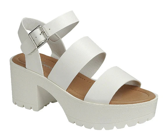 Step out in style with our Kira 25 White Sandals! Featuring a chunky design and a unique waffle heel, these sandals are sure to turn heads. Comfortable and fashionable, these sandals are the perfect addition to any outfit.