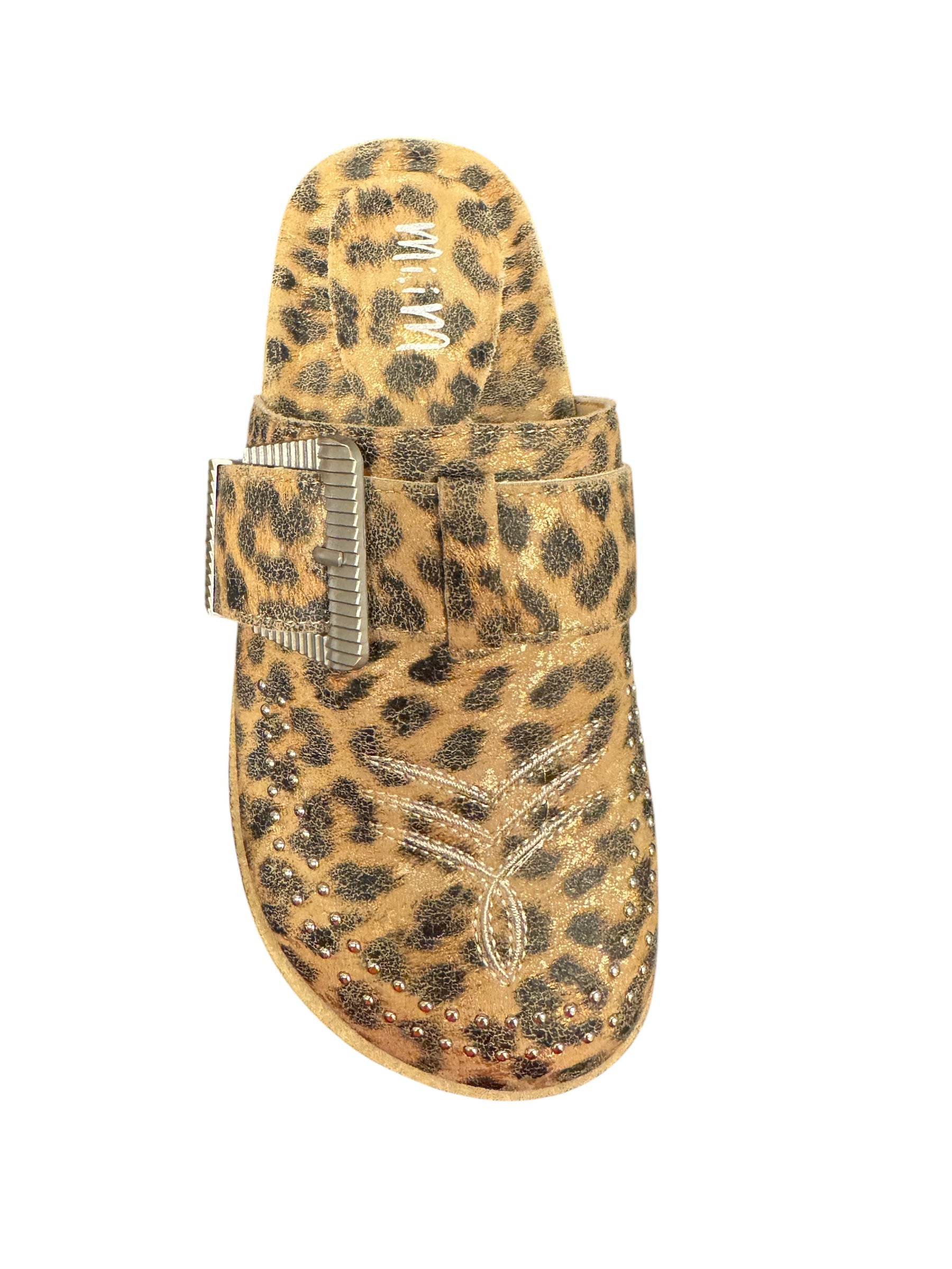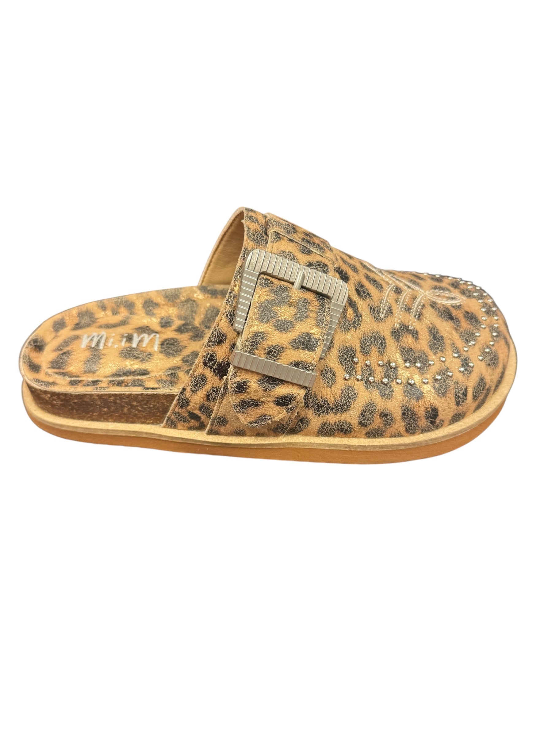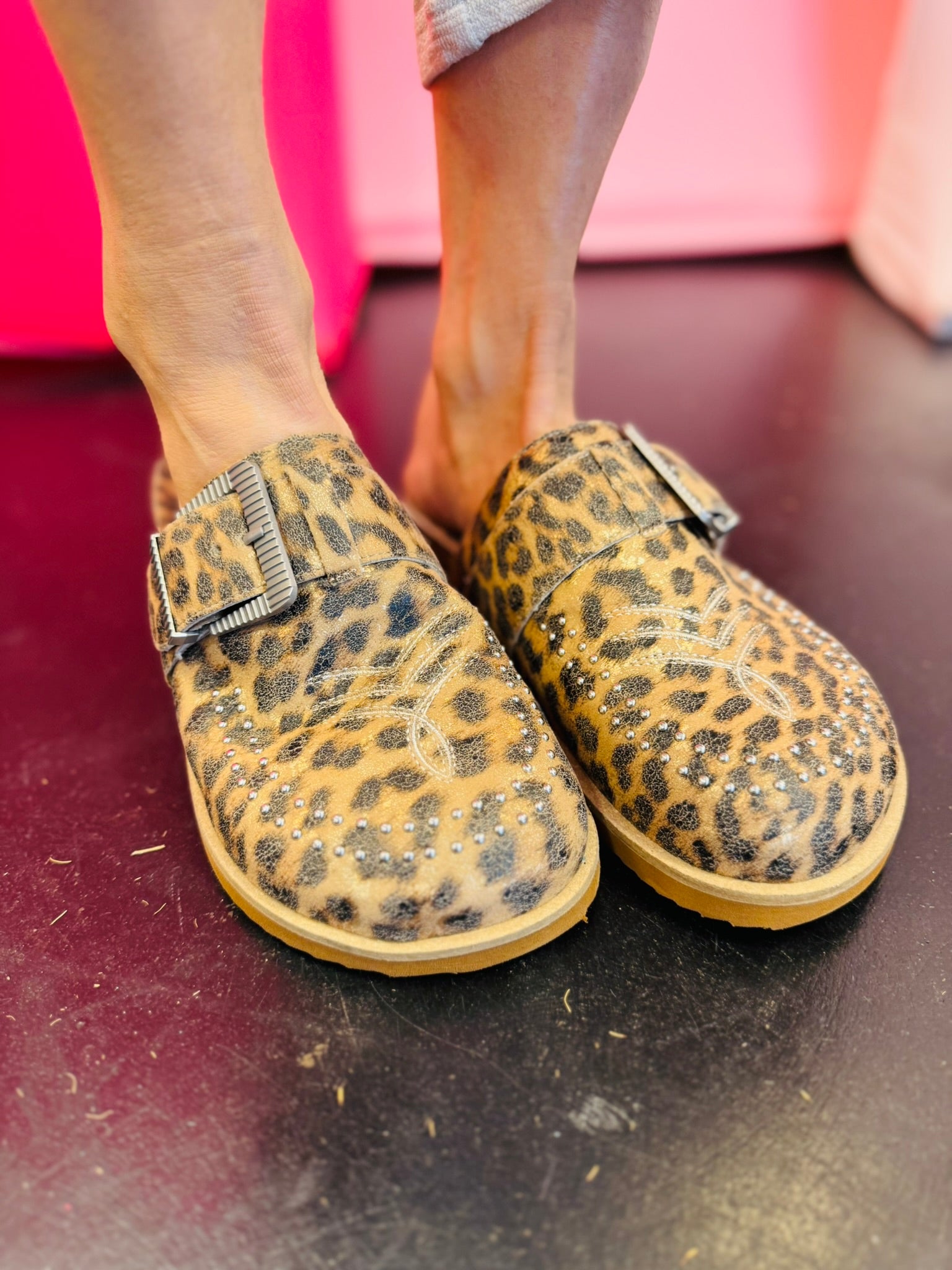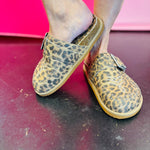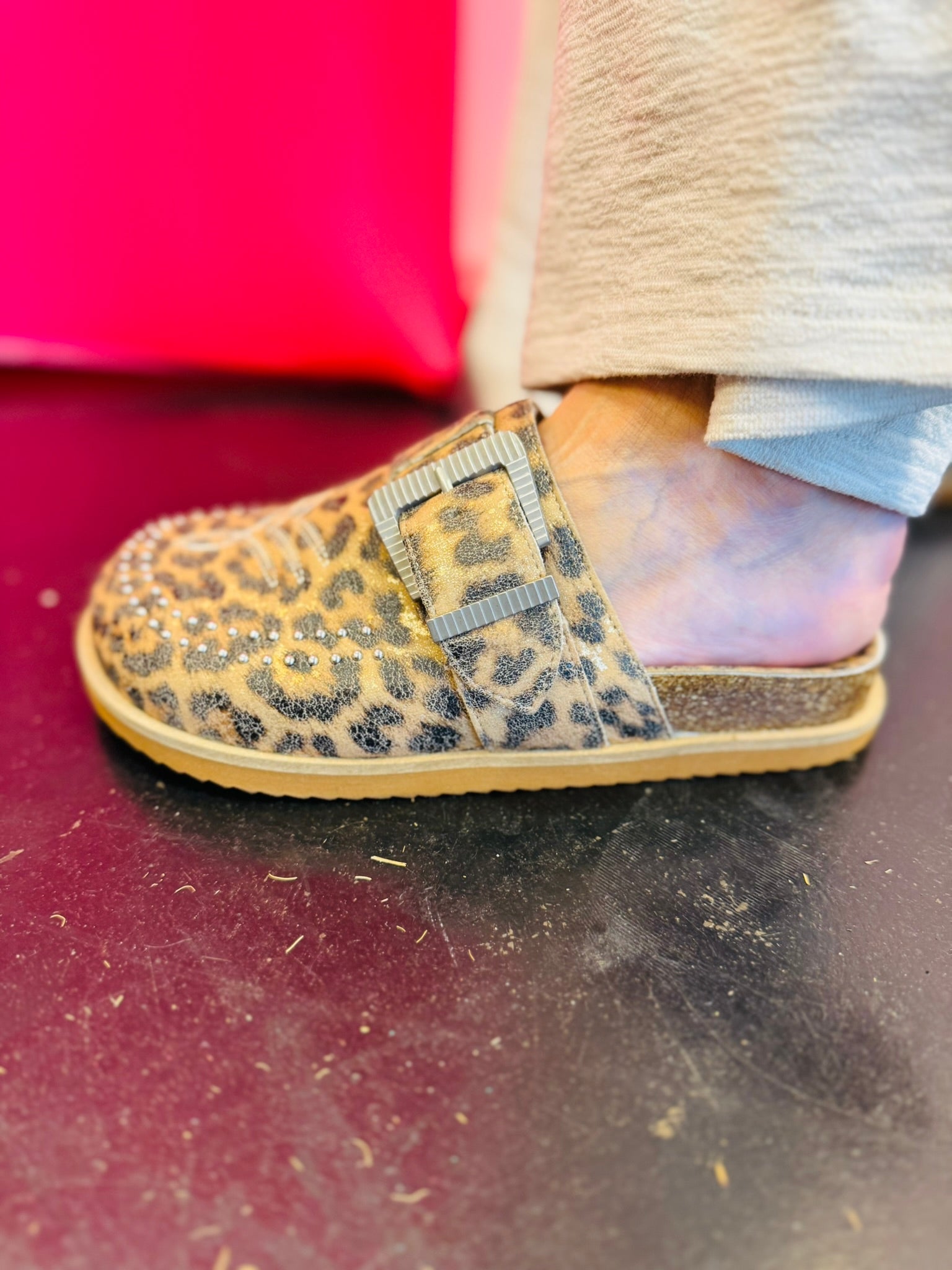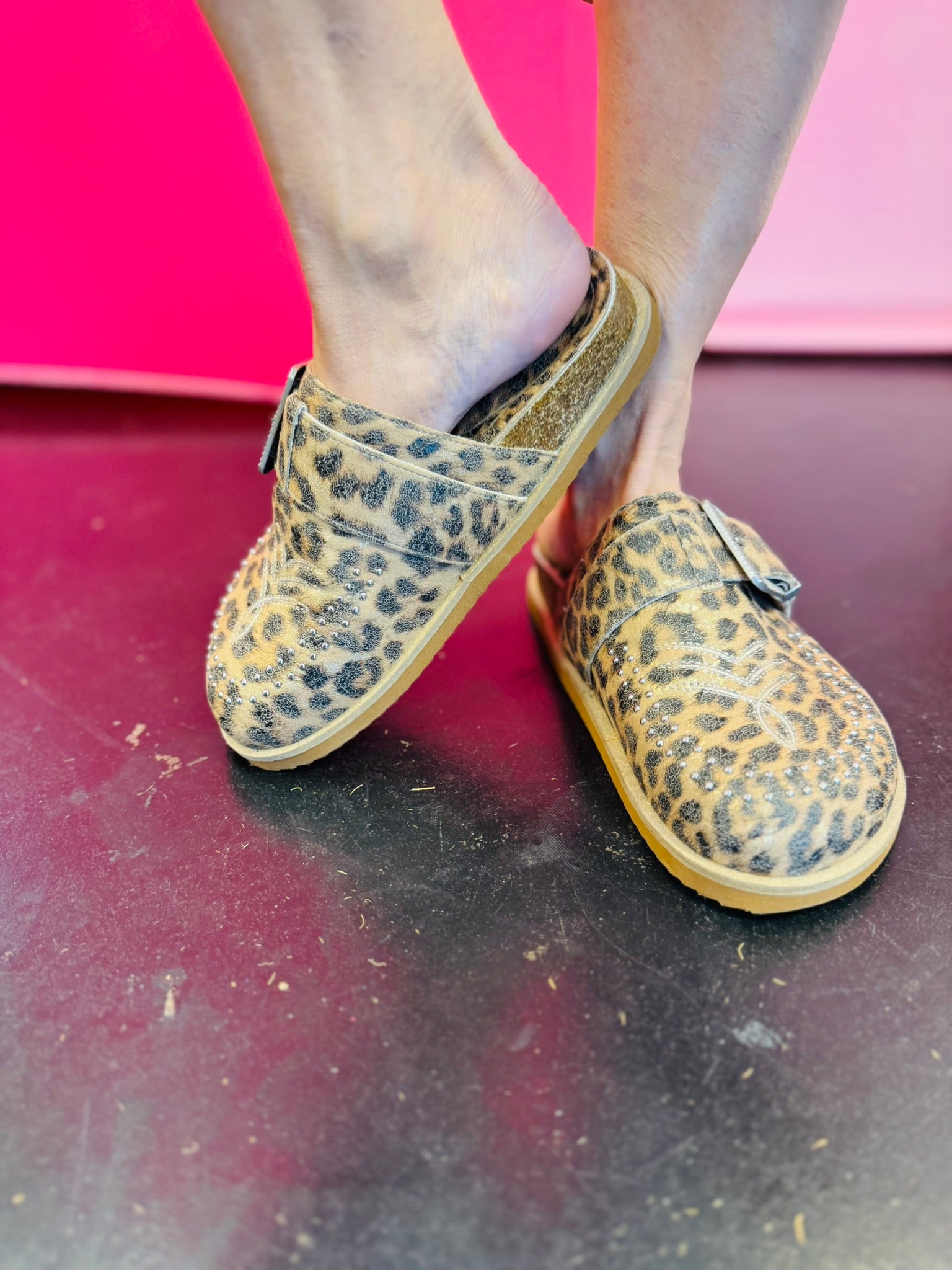 Add a touch of bold, comfortable style to your shoe collection with the Foiled Leopard Print Embroidered Slip-On Clog.