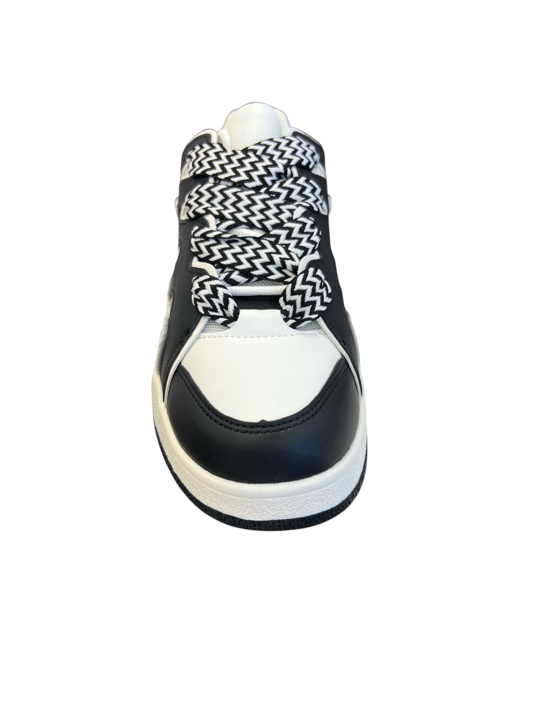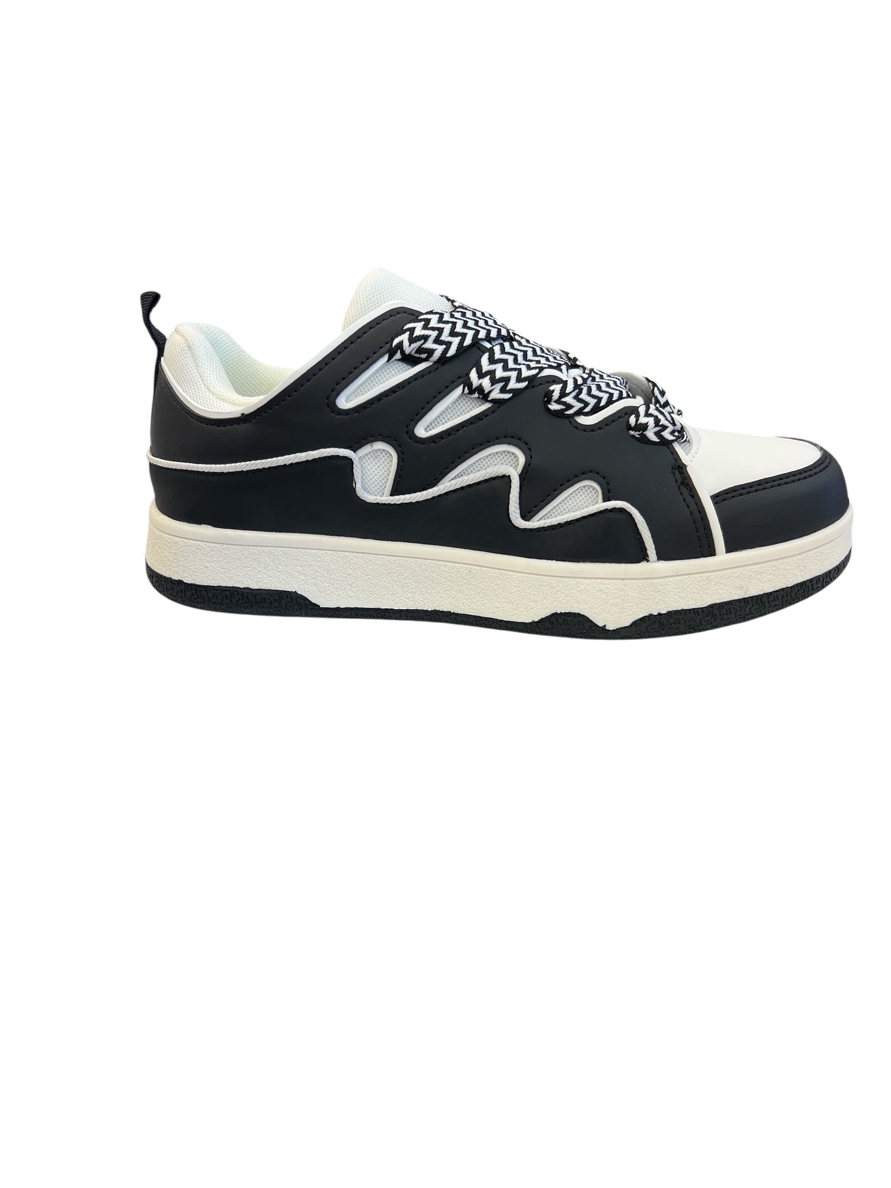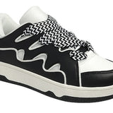 Step into bold energy with the Racer Black & White Sneakers — where edgy meets elevated. Designed with a dynamic wave pattern and thick platform sole, these sneakers bring major attitude and all-day comfort. The contrasting black and white design gives a sleek, modern look while zigzag laces add a touch of playful rebellion.