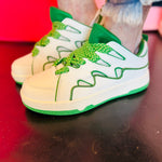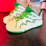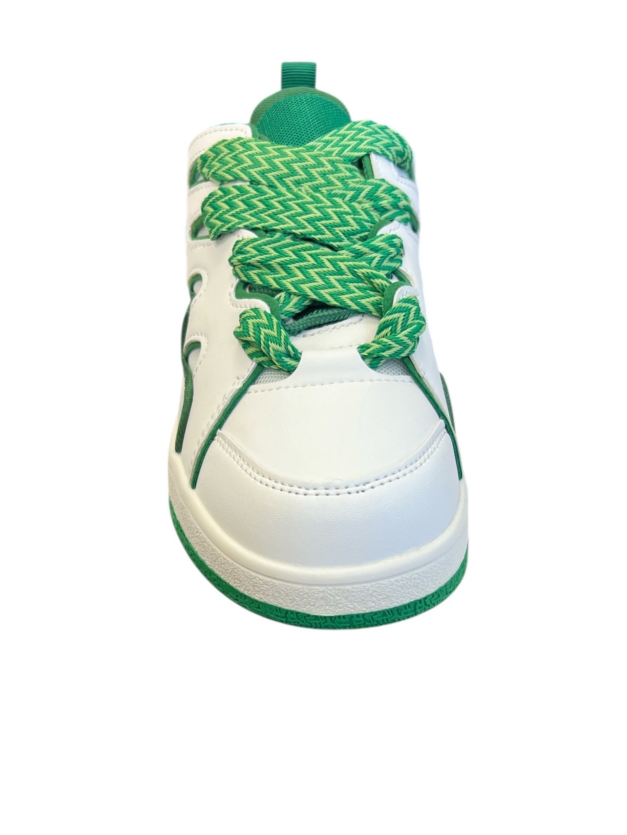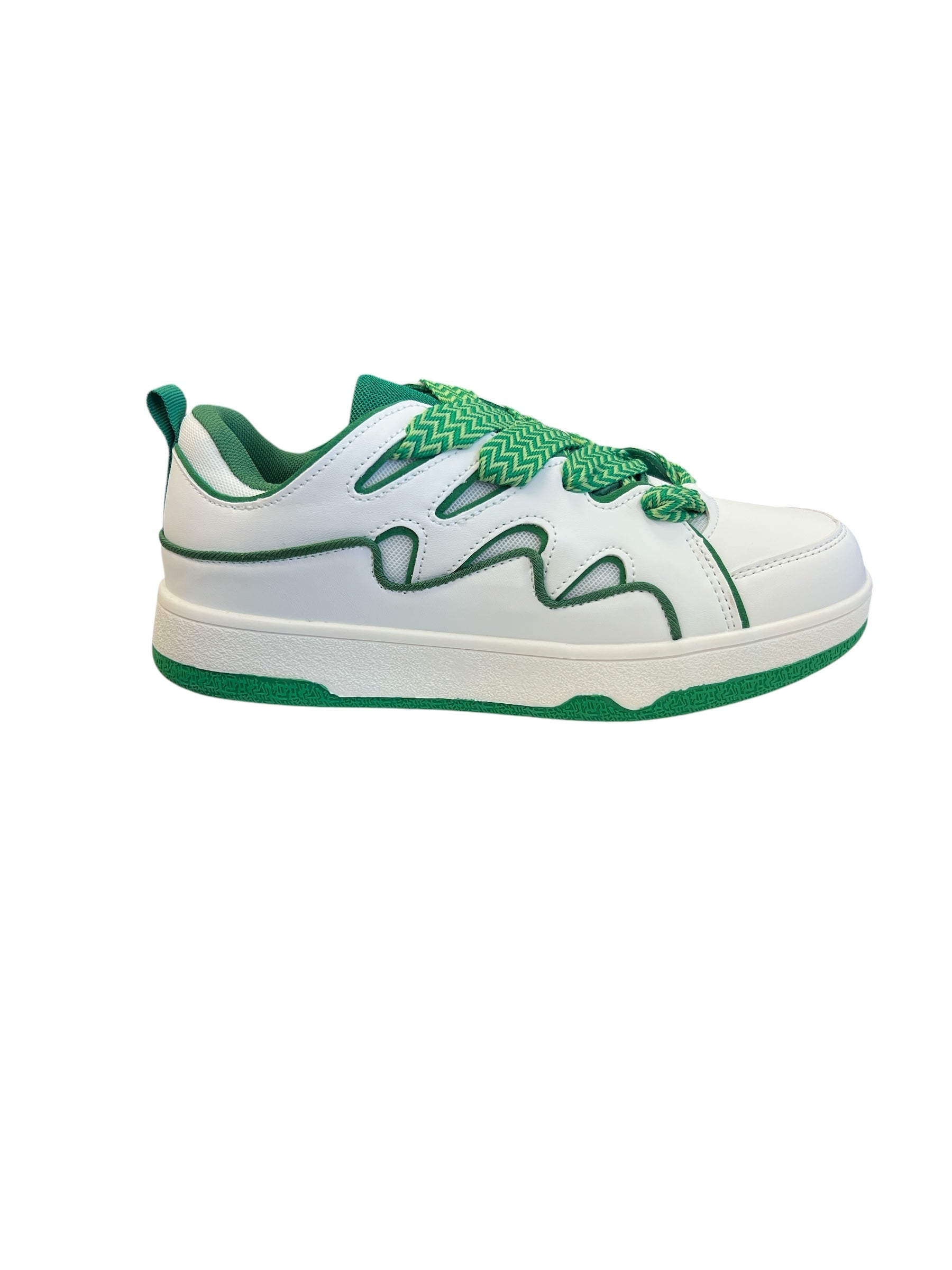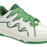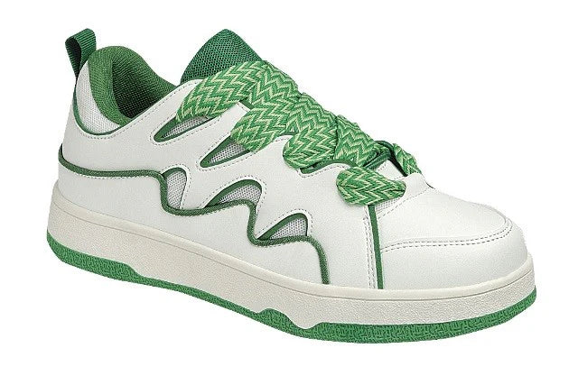 Make moves in the Racer Green & White Sneakers — a bold blend of sporty vibes and streetwear edge. Featuring a striking green and white dynamic wave design, these sneakers stand out with a chunky platform sole and fun zigzag laces that bring just the right amount of flair.