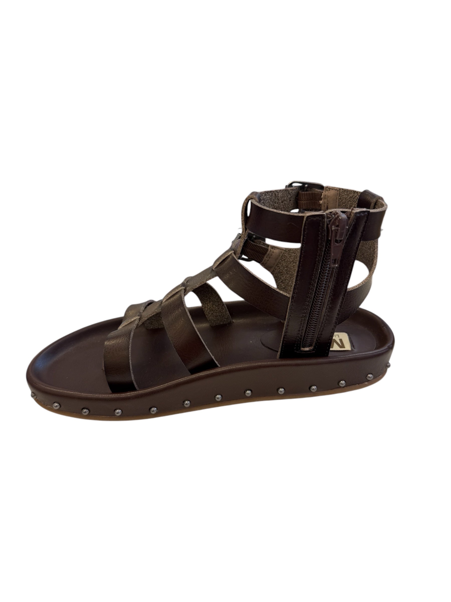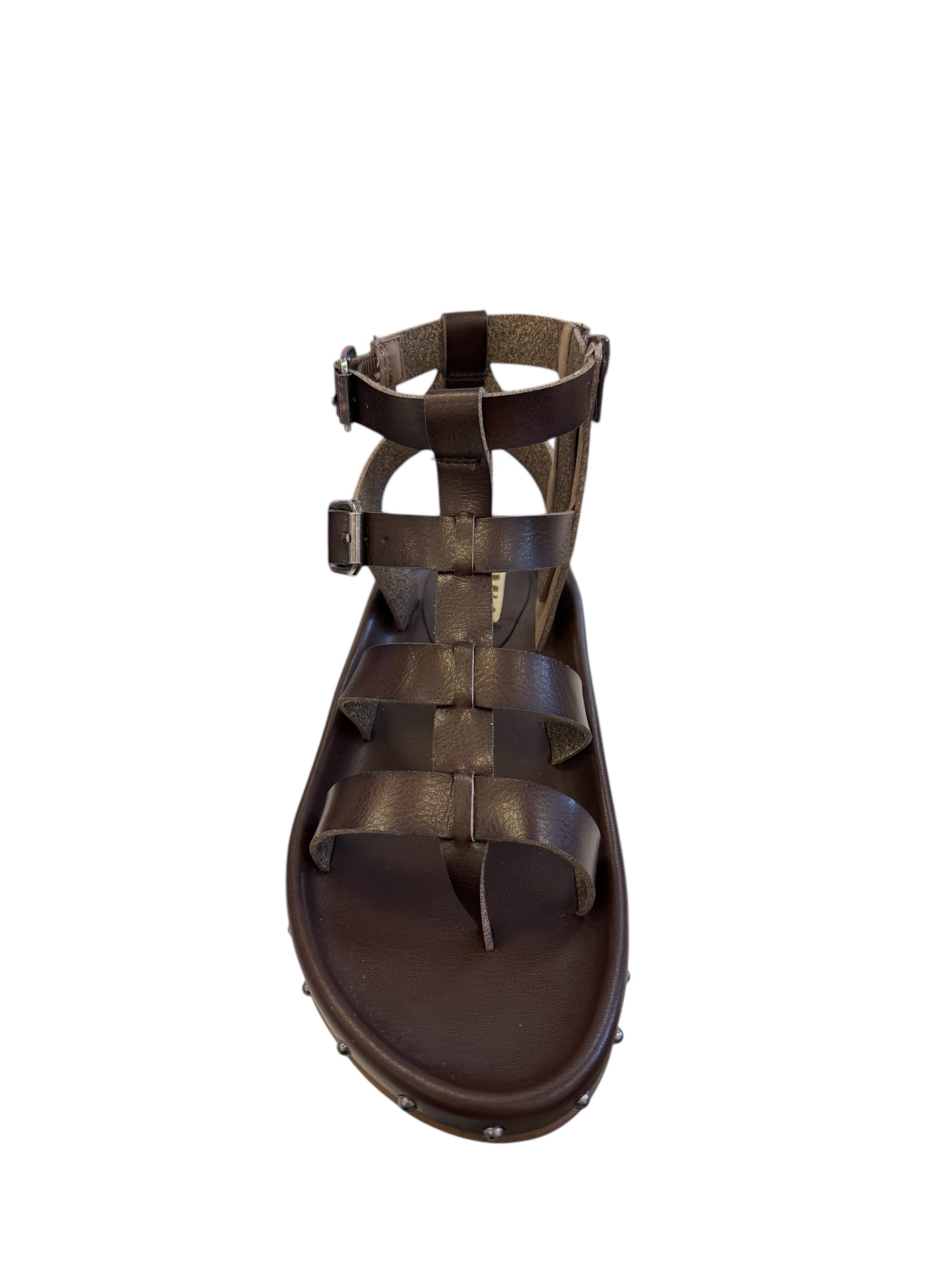 Step into style and comfort with the Zahara Dark Brown Studded Sandal. These gladiator style sandals feature adjustable ankle straps for the perfect fit. Whether you're exploring the city or hitting the beach, these sandals are a must-have for any fashion-forward adventurer.