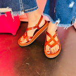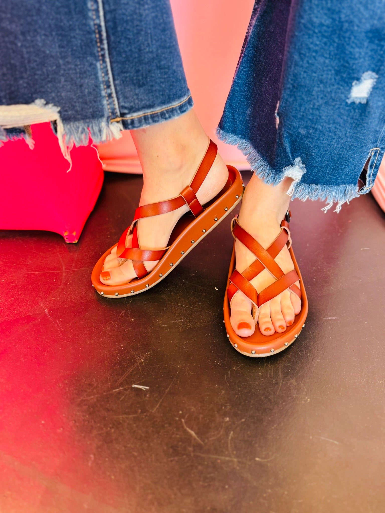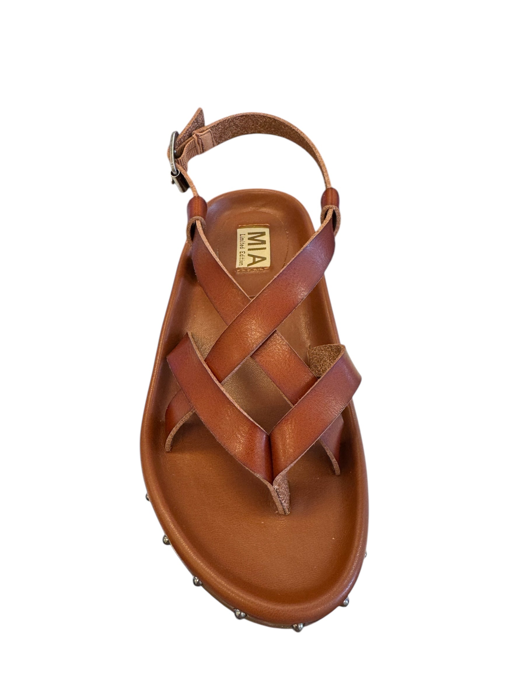 Step into effortless style and all-day comfort with our Mia Zurie Strappy Studded Sandals. Designed in a warm cognac hue, these sandals elevate any outfit with their sleek mix of chic details and wearable design. The intertwining vegan leather straps create a flattering look, while the edgy stud accents add just the right amount of flair. Adjustable buckle closures ensure a secure and custom fit, making them perfect for everyday wear or dressing up your favorite summer looks. Finished on the signature MIA cushioned footbed, these sandals deliver both fashion and function whether you're running errands, enjoying a weekend trip, or heading out for brunch.