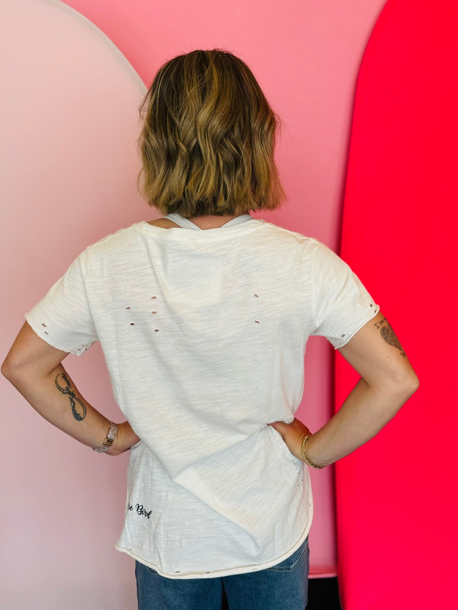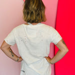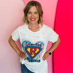 Unleash your inner superwoman with our A Rare Bird Superwoman Tee. This white distressed tee features bling and flower accents, making you a rare bird in the best way possible. Embrace your uniqueness and channel your inner strength with this playful and stylish tee.