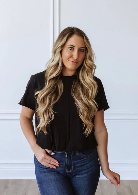 Unleash your playful side with our Black Bubble Tee. Its unique bubble silhouette adds a fun twist to any outfit, while its fully lined front and back provide optimal comfort and style. This versatile tee is perfect for everyday wear, keeping you looking and feeling great all day long.