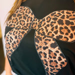 Add a fun and fierce touch to your everyday wardrobe with the Leopard Bow Oversized Tee. Designed with comfort and flair in mind, this tee features an oversized, longer fit that pairs perfectly with biker shorts, leggings, or skinny jeans. The standout feature is the fabric leopard bow on the front, complete with eye-catching embroidered detailing for added texture and personality.