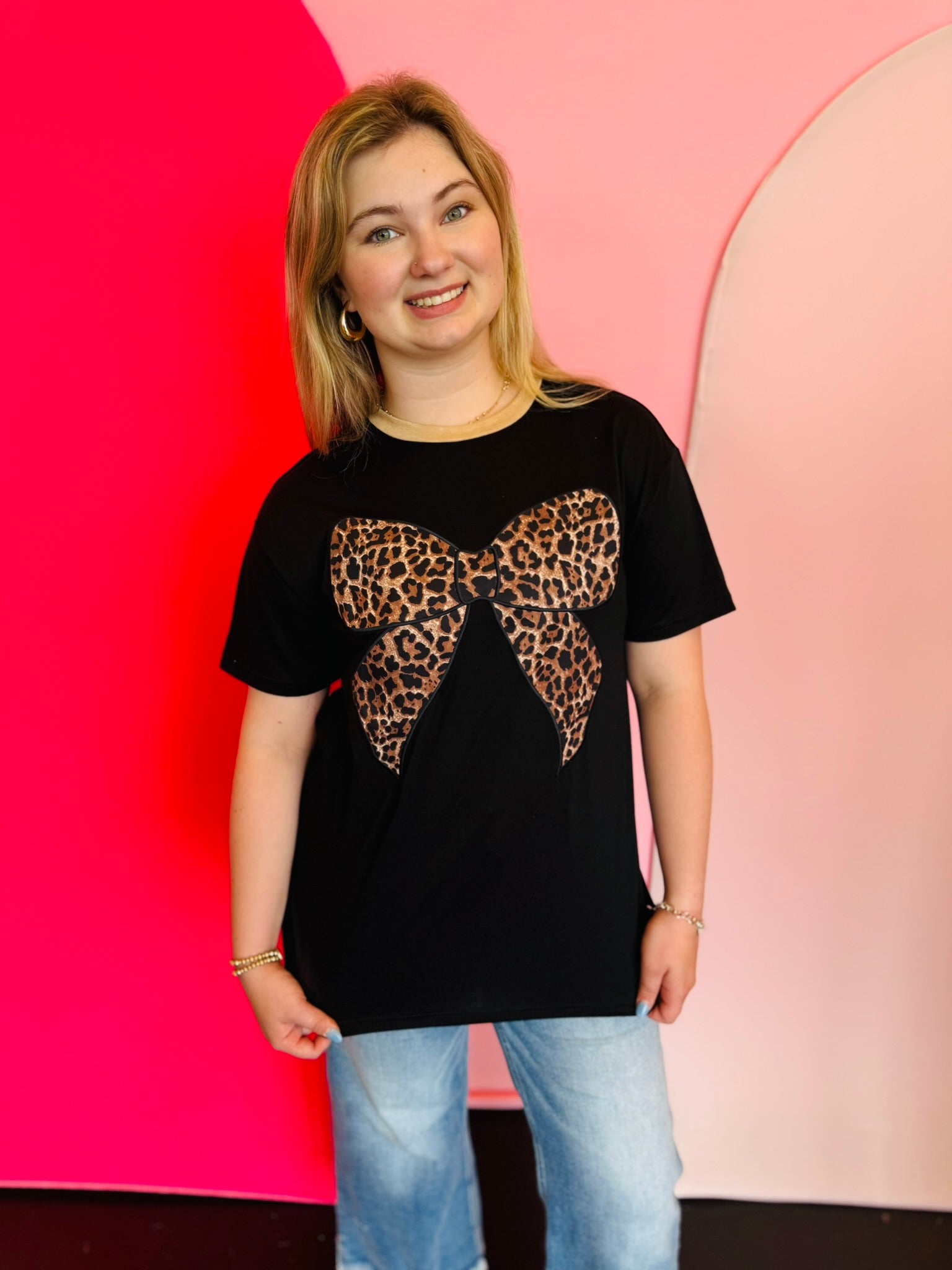 Leopard Bow Oversized Tee – Bold, Playful, and Effortlessly Stylish