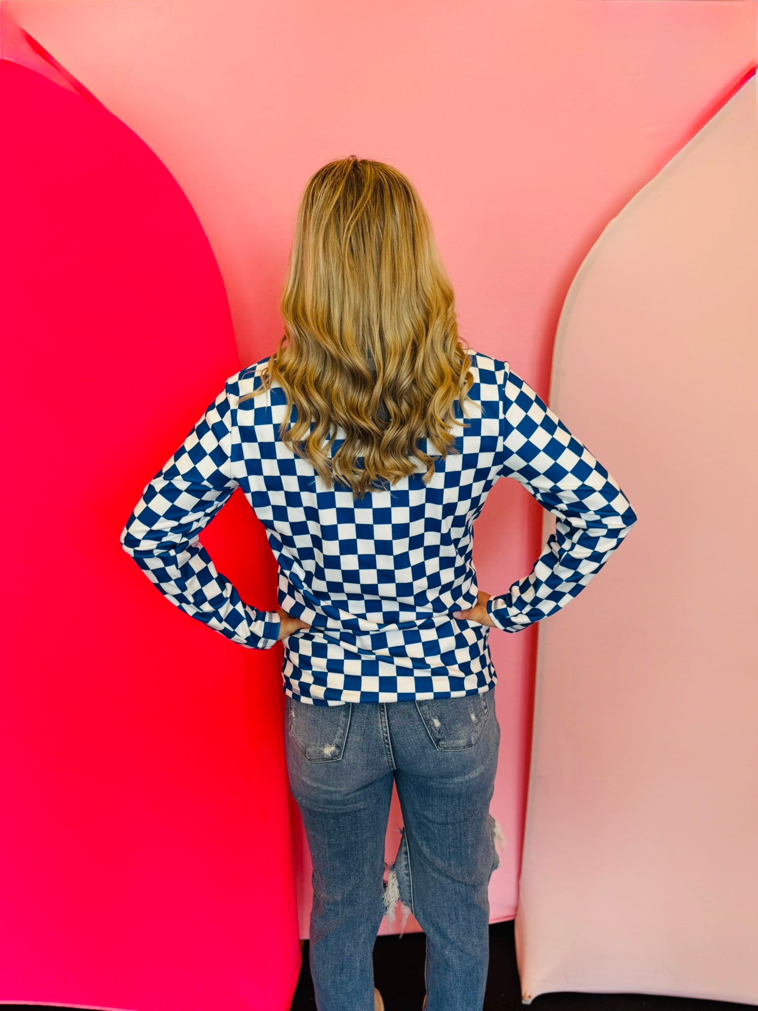 Blue & White Checkered Pep Rally Pullover