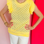 The cutest little Spring transition, ruffle sleeve sweater! Such a feminine look that compliments jeans, pants or shorts!