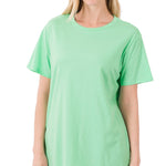 Rock this Green Mint Tee and show off your playful side! Made from lightweight 100% cotton, this boyfriend-style tee boasts a relaxed fit, perfect for layering or wearing on its own. Grab yours today and add a fun twist to any outfit.