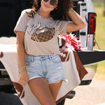 Get ready for game day with the Football Szn Checkered Tee. This stylish, neutral-colored graphic tee is crafted from a soft and comfortable blend, making it the perfect choice for any football fan. It features a unique, checkered brown football design with dazzling glitter accents that add the perfect amount of sparkle. Below the football, the phrase "football szn" is written in a trendy, looping script. It is a chic and comfortable way to show your love for the game all season long.