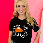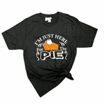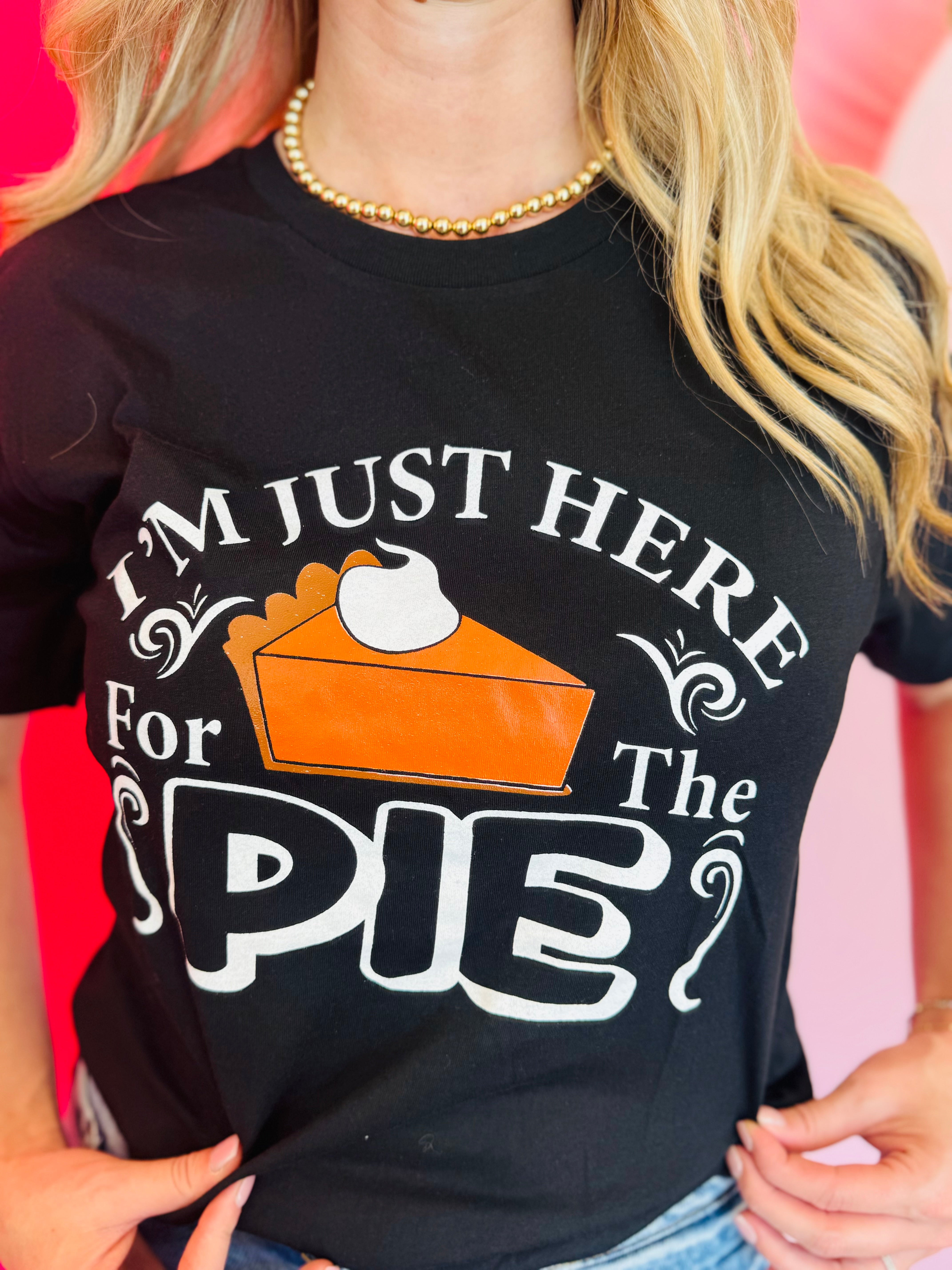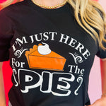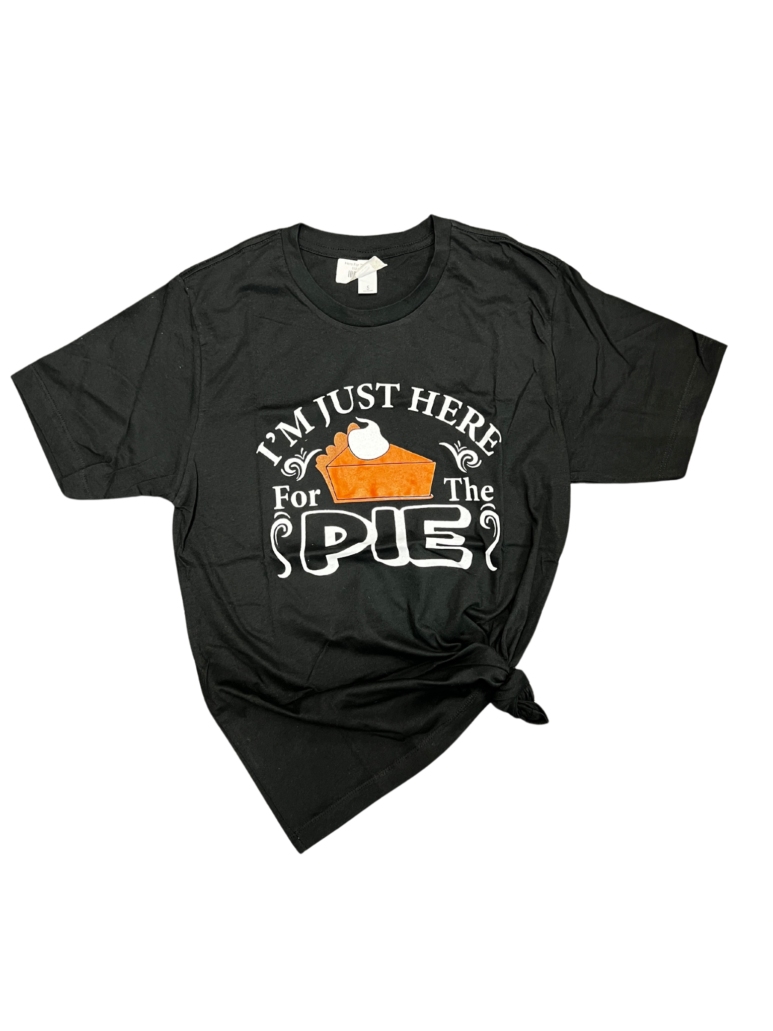 Indulge your love for pie with our "Here For The Pie" tee! This playful black tee features crisp white wording and a tempting picture of pumpkin pie. Perfect for pie-lovers everywhere, this tee lets you show off your love for all things sweet and delicious.