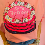 Celebrate your special day in sparkling style with our "It's My Birthday" Pink Tee! This festive t-shirt is crafted from a soft and stretchy blend for a perfectly comfortable fit. The vibrant pink tee features a bold, multi-layered birthday cake graphic, lavishly decorated with shimmering sequins that catch the light. Across the front, the phrase "It's My Birthday!" is proudly displayed. It is the perfect statement piece to ensure all eyes are on you during your celebration.