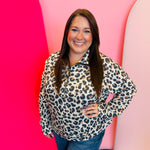 Unleash your wild side with the Leopard Pullover Top, your new go-to for comfort and trend-setting style. Crafted from a luxuriously soft French terry fabric, this top features a classic leopard print for a touch of fierce sophistication. The modern high neck and functional half-zip closure allow for versatile styling. Made from a premium blend of 85% polyester, 10% rayon, and 5% spandex, this long-sleeve pullover offers the perfect amount of stretch for a flattering, all-day fit that pairs perfectly with jeans or leggings.