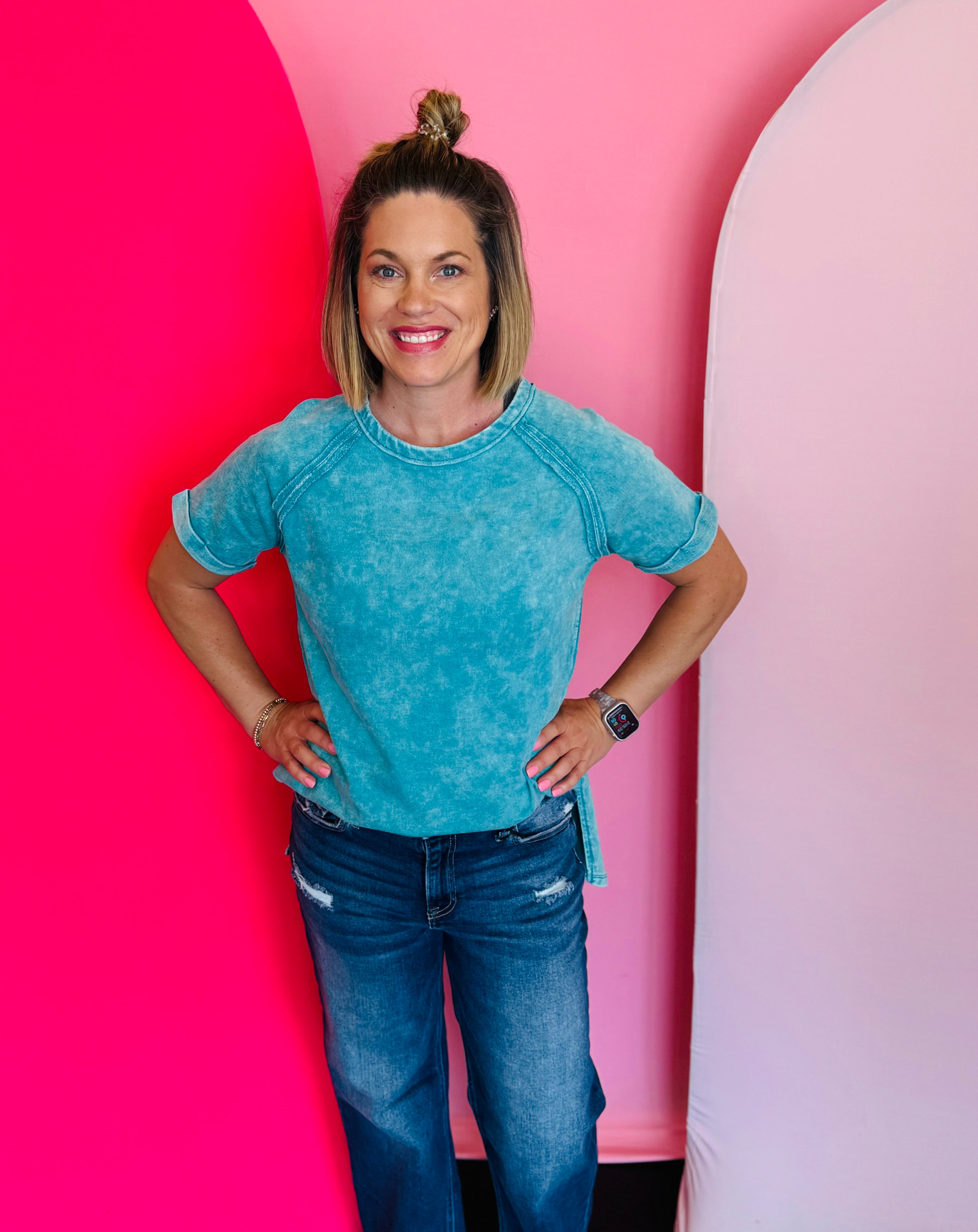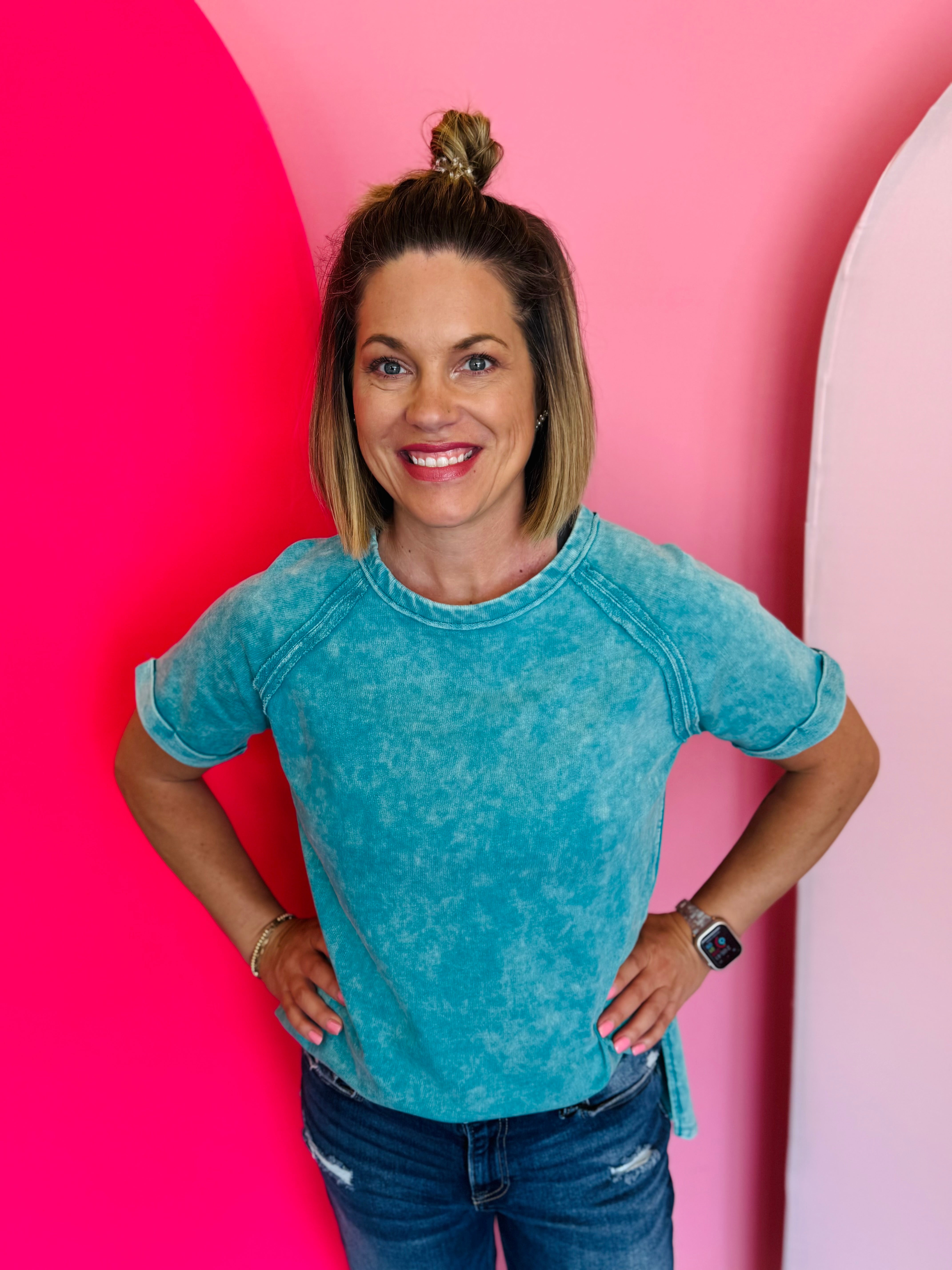 Add a touch of casual comfort to your wardrobe with our Light Teal French Terry Raglan Pullover. Made with high-quality French Terry fabric, this pullover features a unique acid wash finish, raw edge raglan short cuff sleeves, and a round hem with a double back seam. Complete with a back patch for added detail, this pullover is perfect for any everyday outfit.