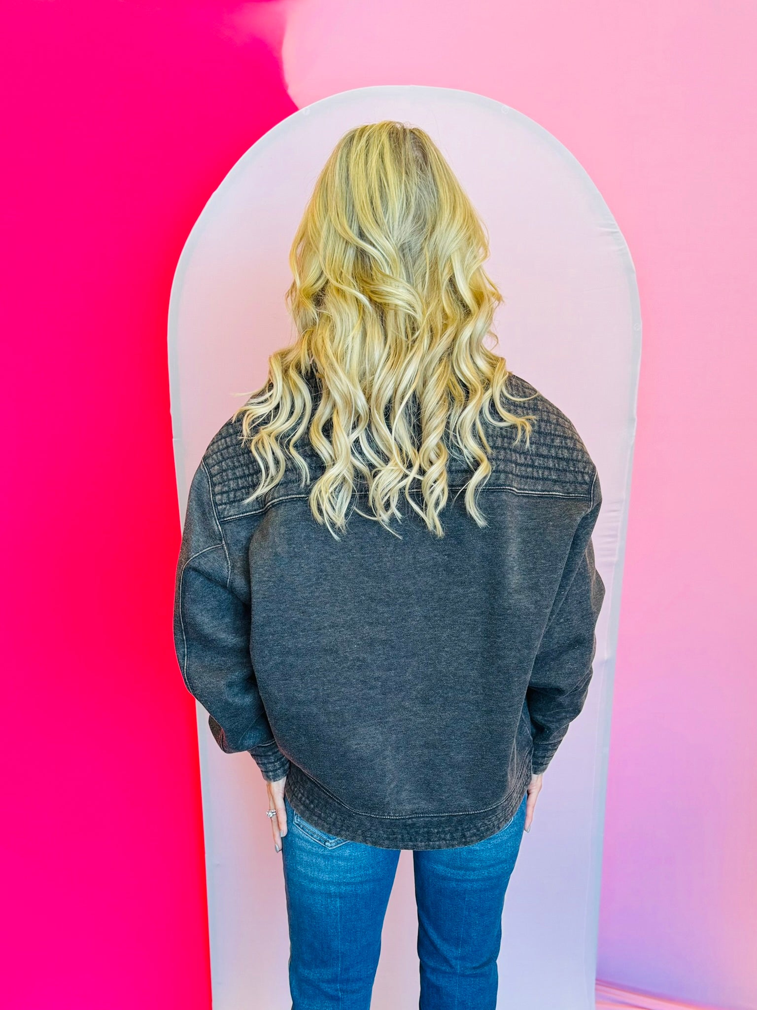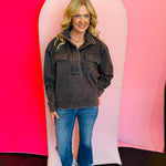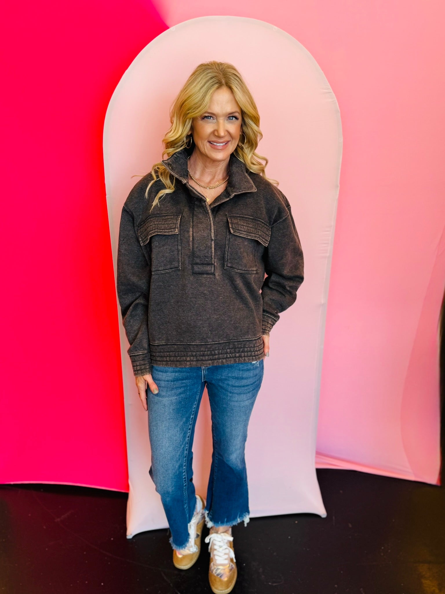 Cozy meets cool in the Ash Black Half-Snap Sweatshirt, a vintage-inspired fleece pullover. The unique ash black acid-wash finish gives each piece a one-of-a-kind, lived-in vibe. Featuring a functional half-snap button front, it’s perfect for easy layering over your favorite tees. Made from an incredibly soft fleece with a comfortable, relaxed fit, this sweatshirt is your new go-to for everything from truly casual days out to cozy nights in. Expect beautiful and natural variations in the color and finish of this unique piece.