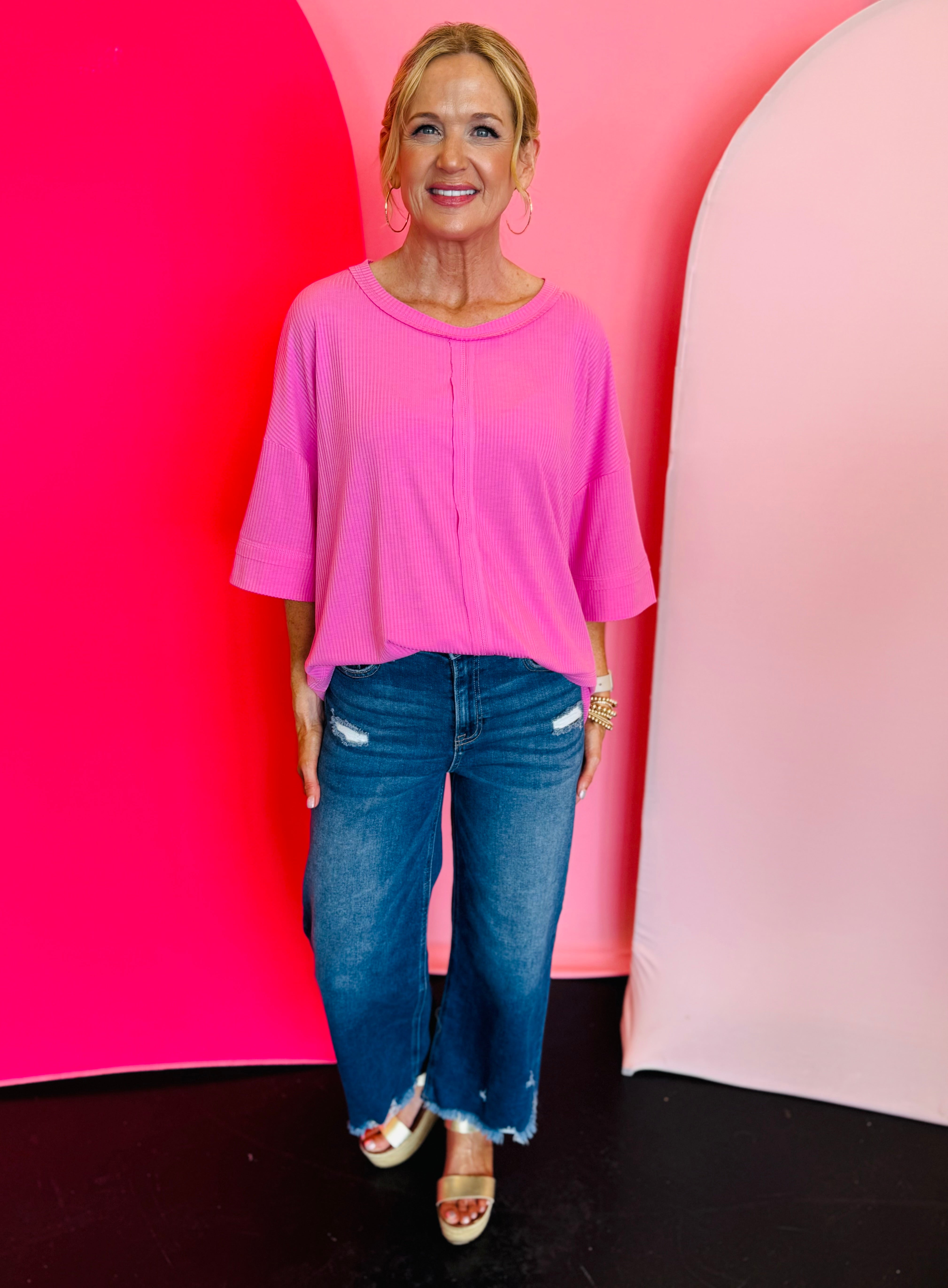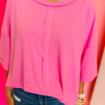 Candy Pink Ribbed Boat Neck Top