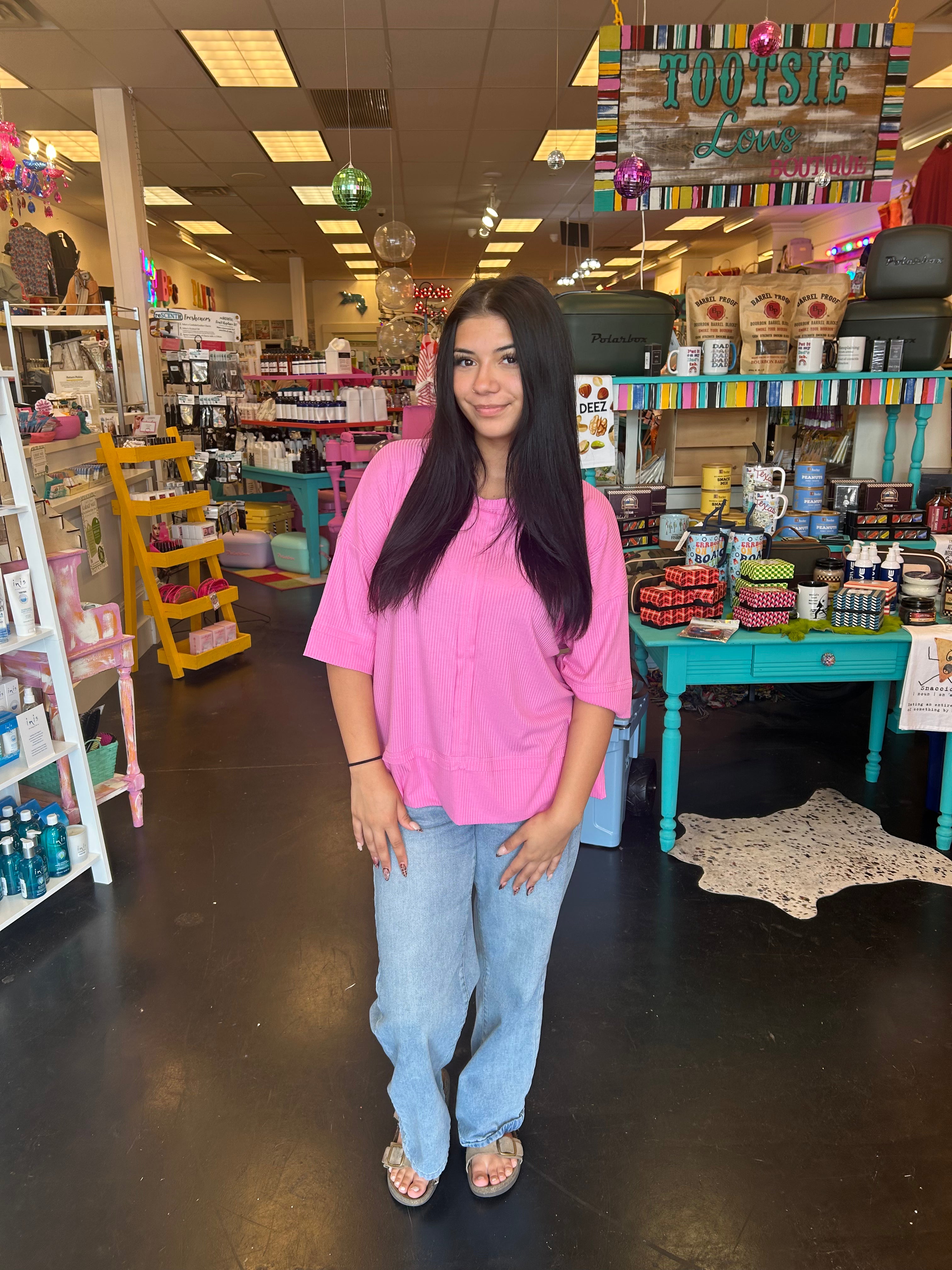 Get cozy in our Candy Pink Ribbed Boat Neck Top! The super soft ribbed material and 3/4 sleeves provide ultimate comfort, while the boat neck adds a touch of style. Perfect for lounging or running errands. (Warning: may cause excessive relaxation!)