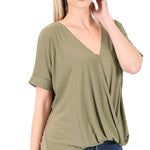 Get ready to rock your style game with our Khaki Draped Front Top! Made from soft, luxurious RAYON SPAN CREPE fabric, this top features a layered-look with a flattering draped front. Elevate your everyday look with this versatile and chic top. (No one will drape on your fashion parade with this top.)
