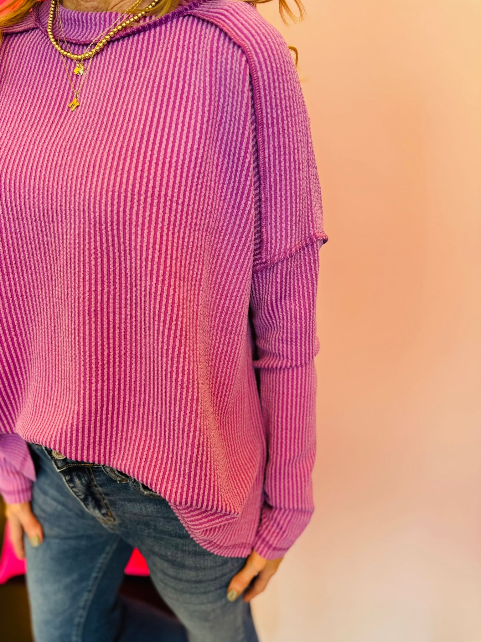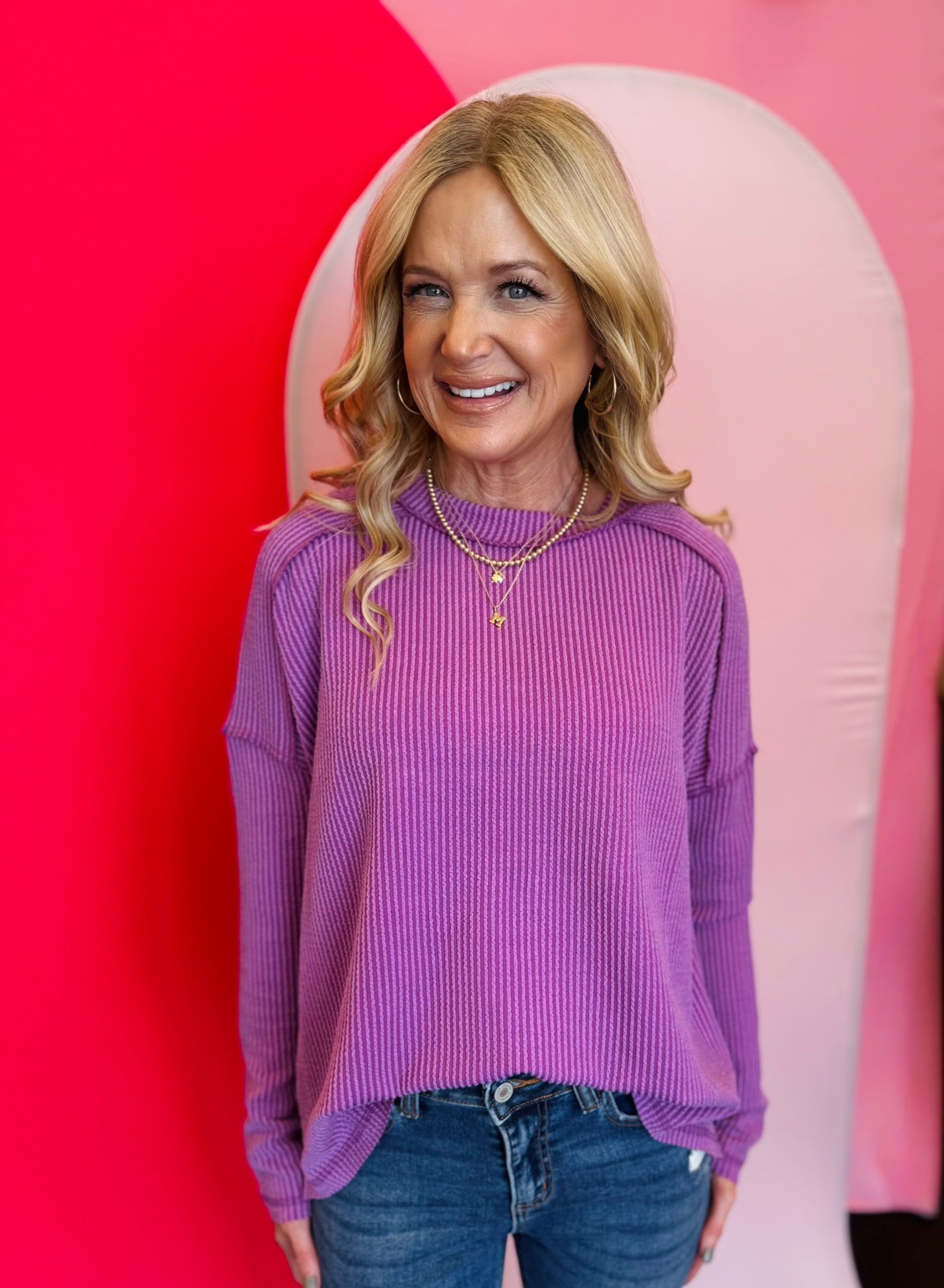 Say hello to effortless flair with our Light Plum Ribbed Boat Neck Top! This is a must-have staple. This eye-catching long sleeve top features a stylish raised ribbed texture, raw edge detailing, and a flattering boat neckline for a modern silhouette. Its roomy fit and soft, stretchy fabric make it perfect for all-day comfort, whether you're dressing it up or keeping it casual.