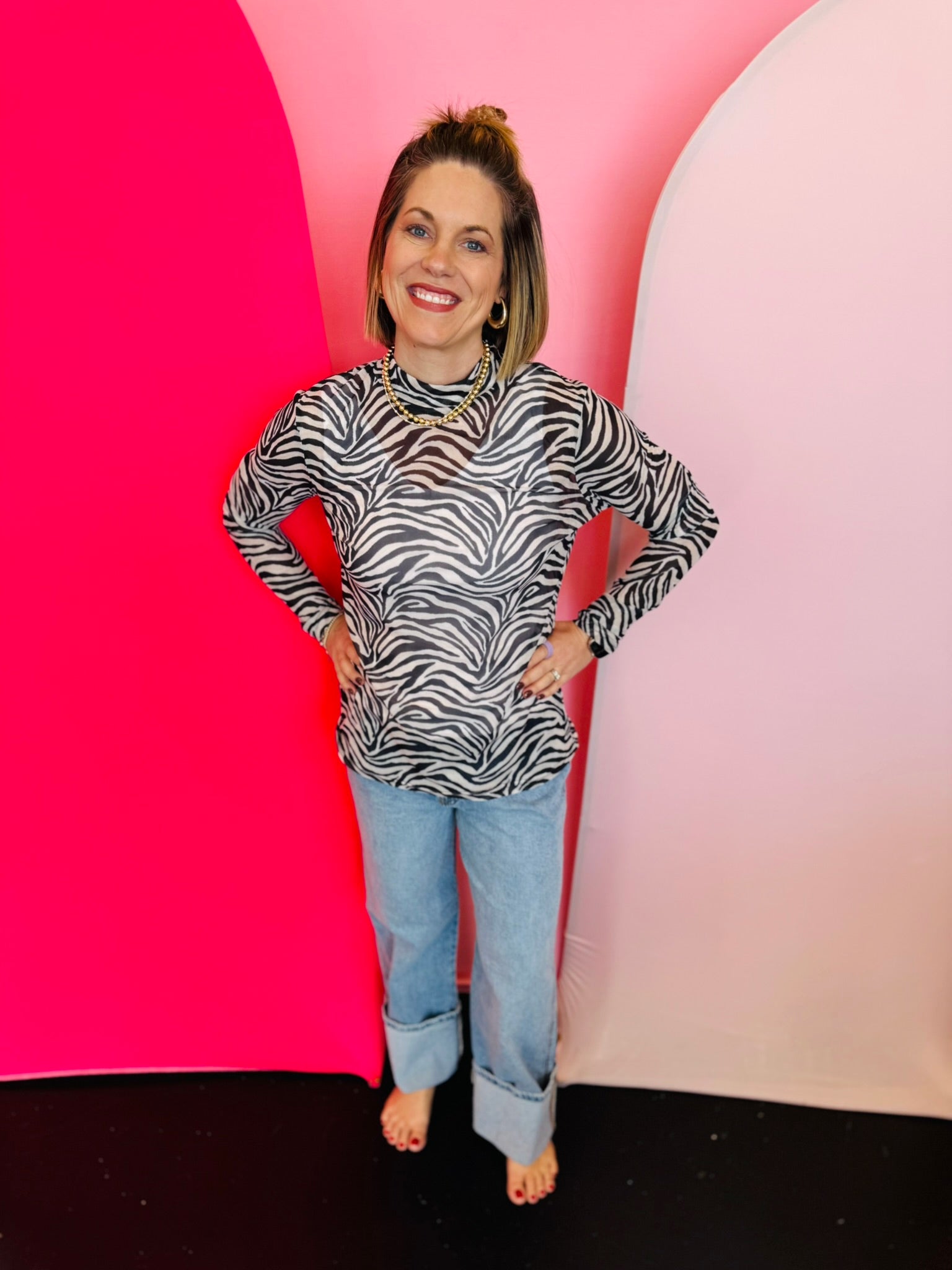 Black and white zebra print mesh top, lightweight and perfect for layering.