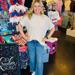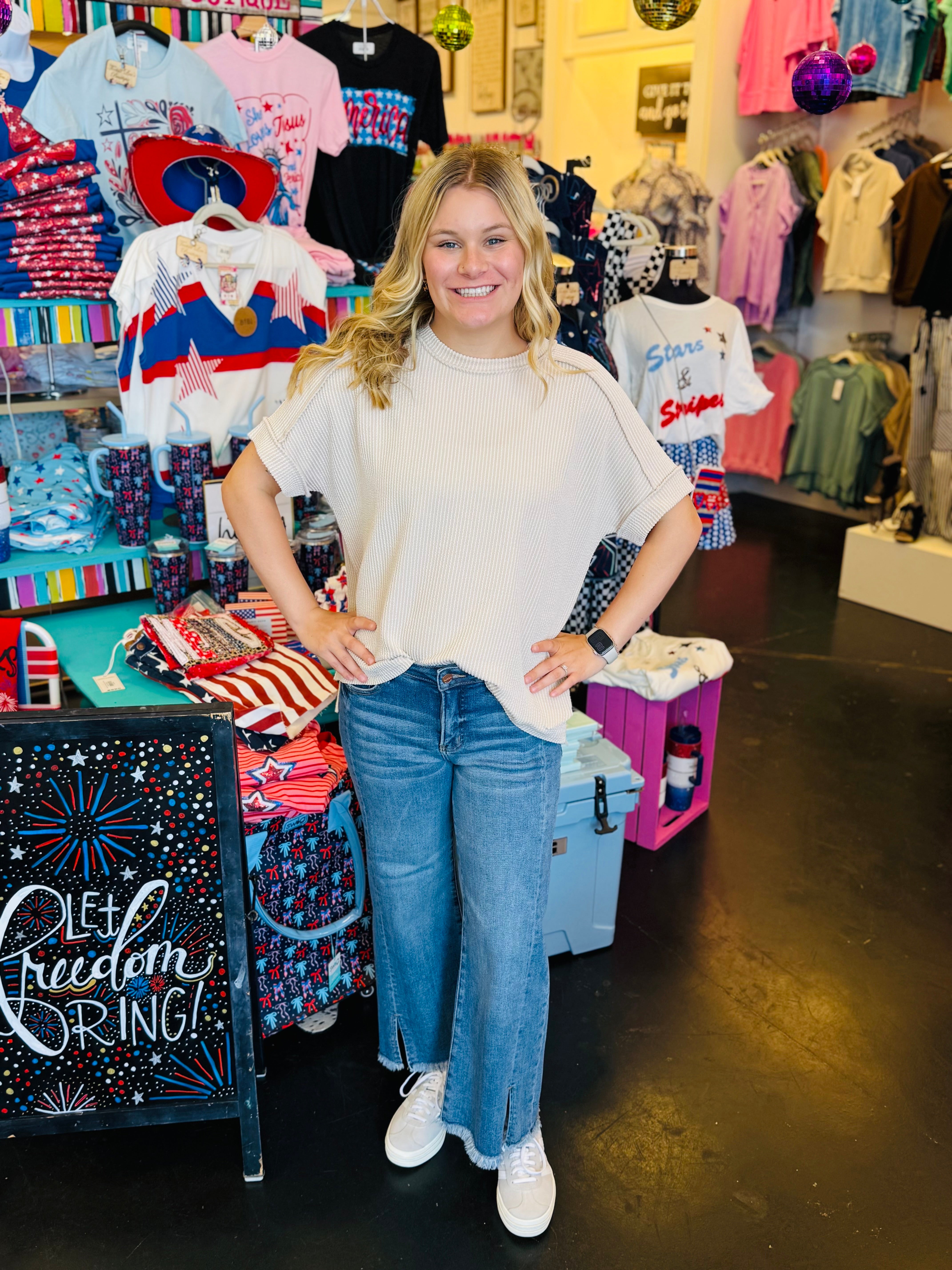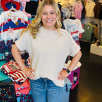 This Sand Beige Raised Ribbed Top features a fun raised rib cuff sleeve with a trendy raw edge finish. Designed for comfort and breathability, it keeps you cool and cozy all year round. Perfect for mixing and matching, it adds a playful touch to any outfit!