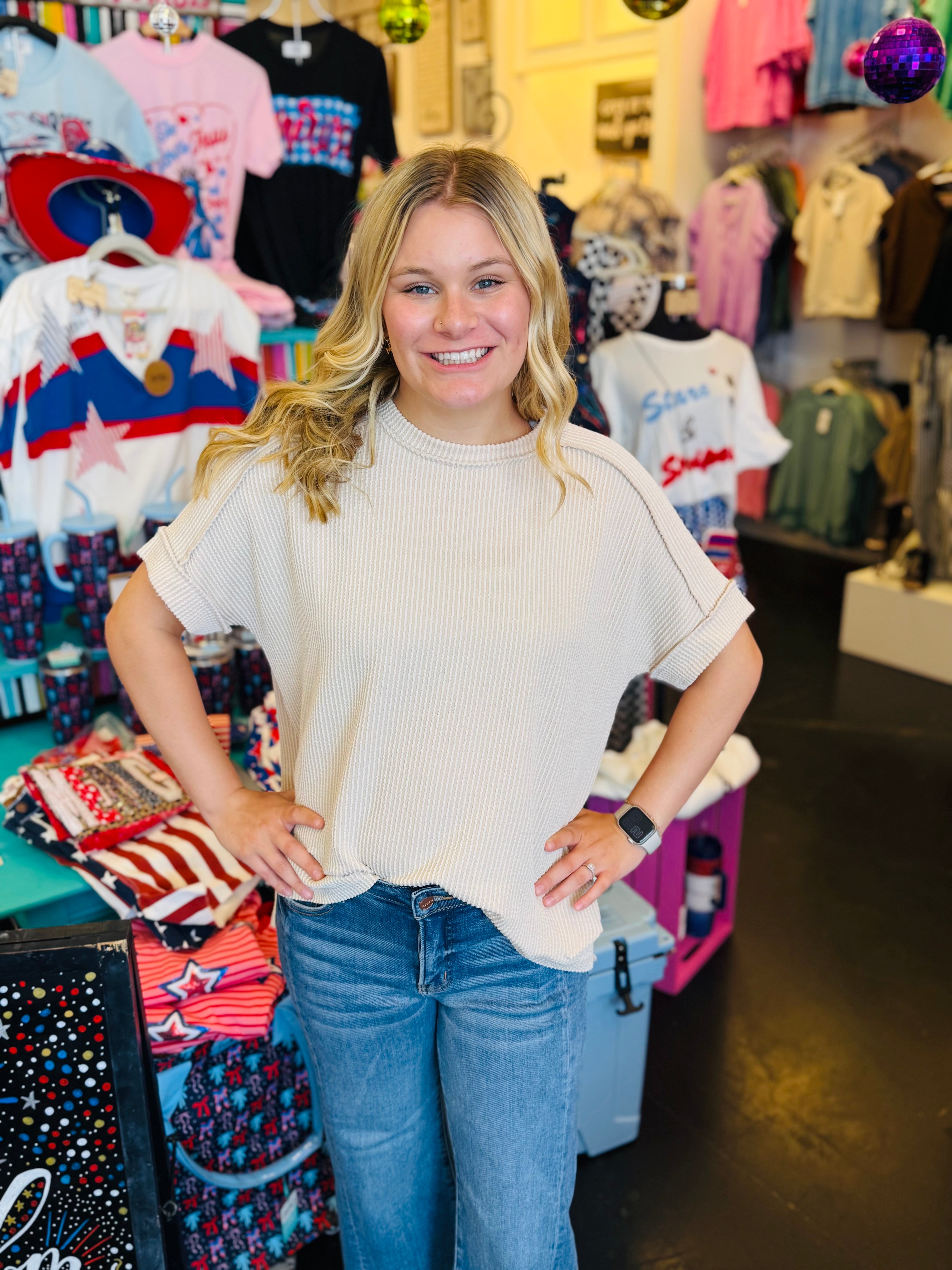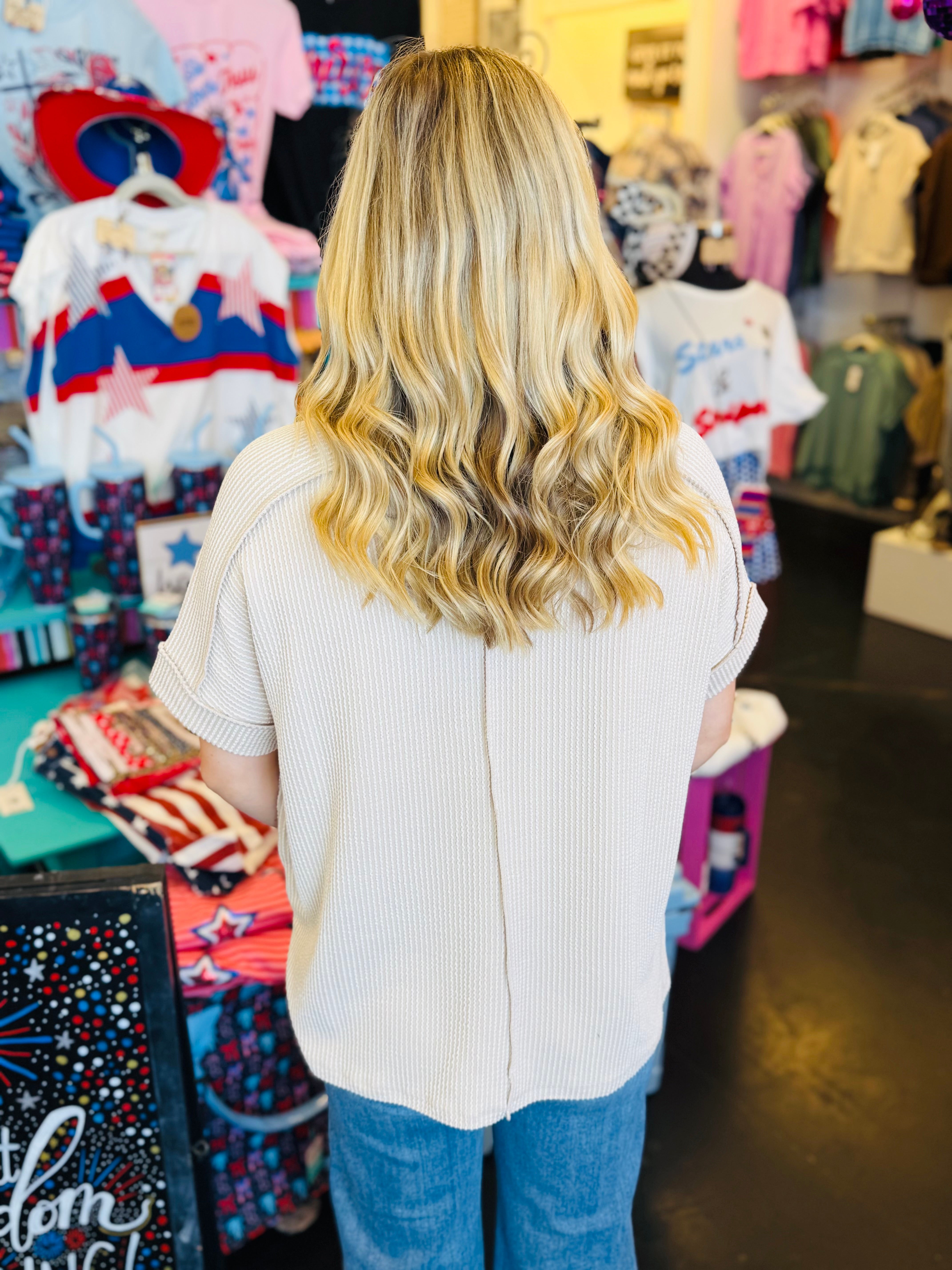 Sand Beige Raised Ribbed Top