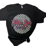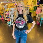 Get your fashion game on point with Tootsie Lou's Boutique Tee! This black tee features bold and stylish checkered graphics that will make you stand out from the crowd. Upgrade your wardrobe and rock this trendy top. (Don't miss out on being the ultimate fashionista!)
