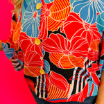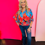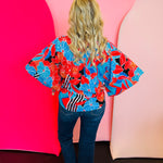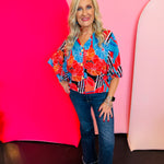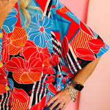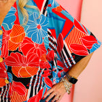 This Blue Floral Black Stripe Kimono Top effortlessly balances bold pattern and feminine detail, making it an essential choice for warm-weather style or year-round layering.