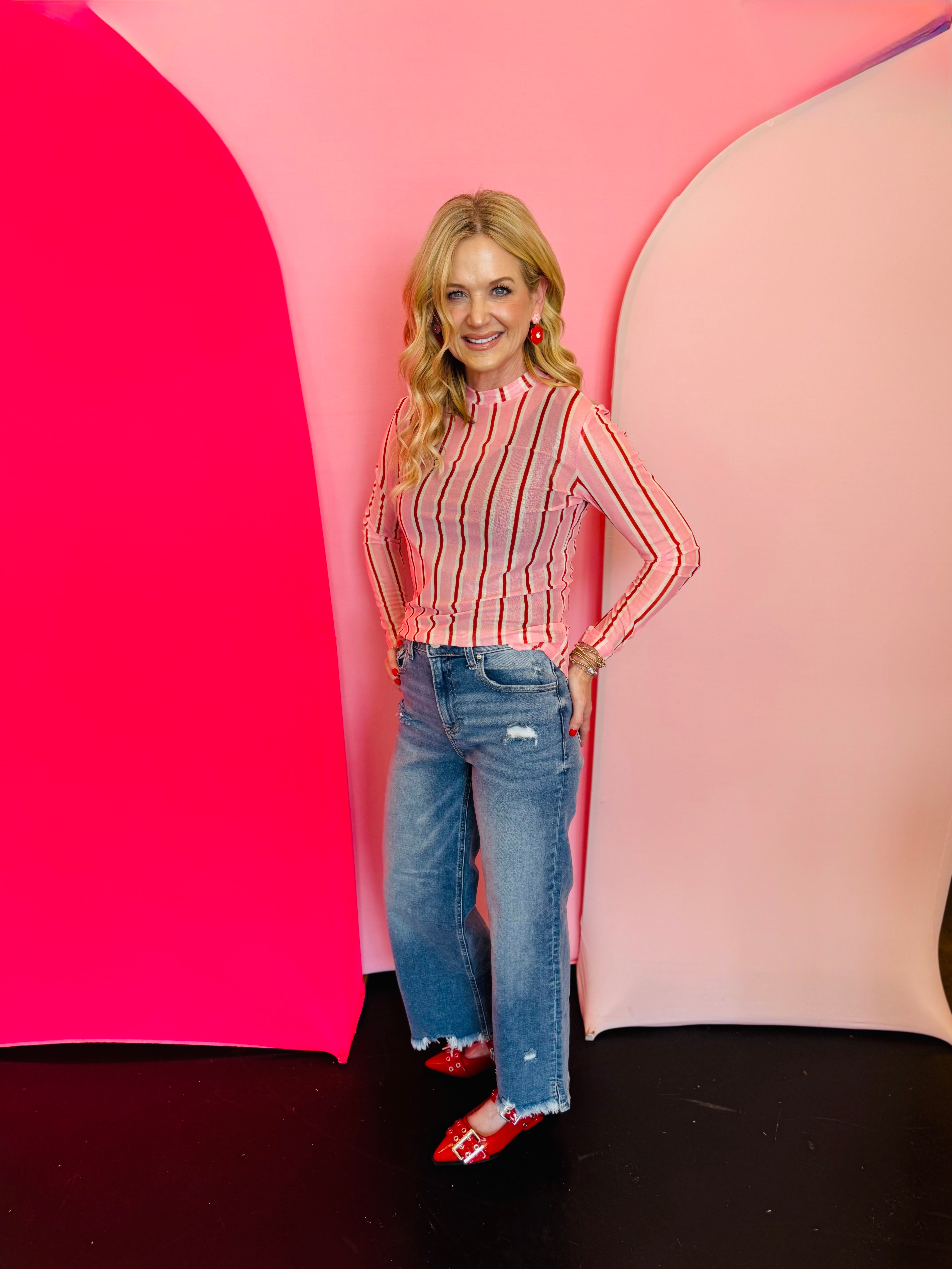 Pink & Red Striped Mesh Top