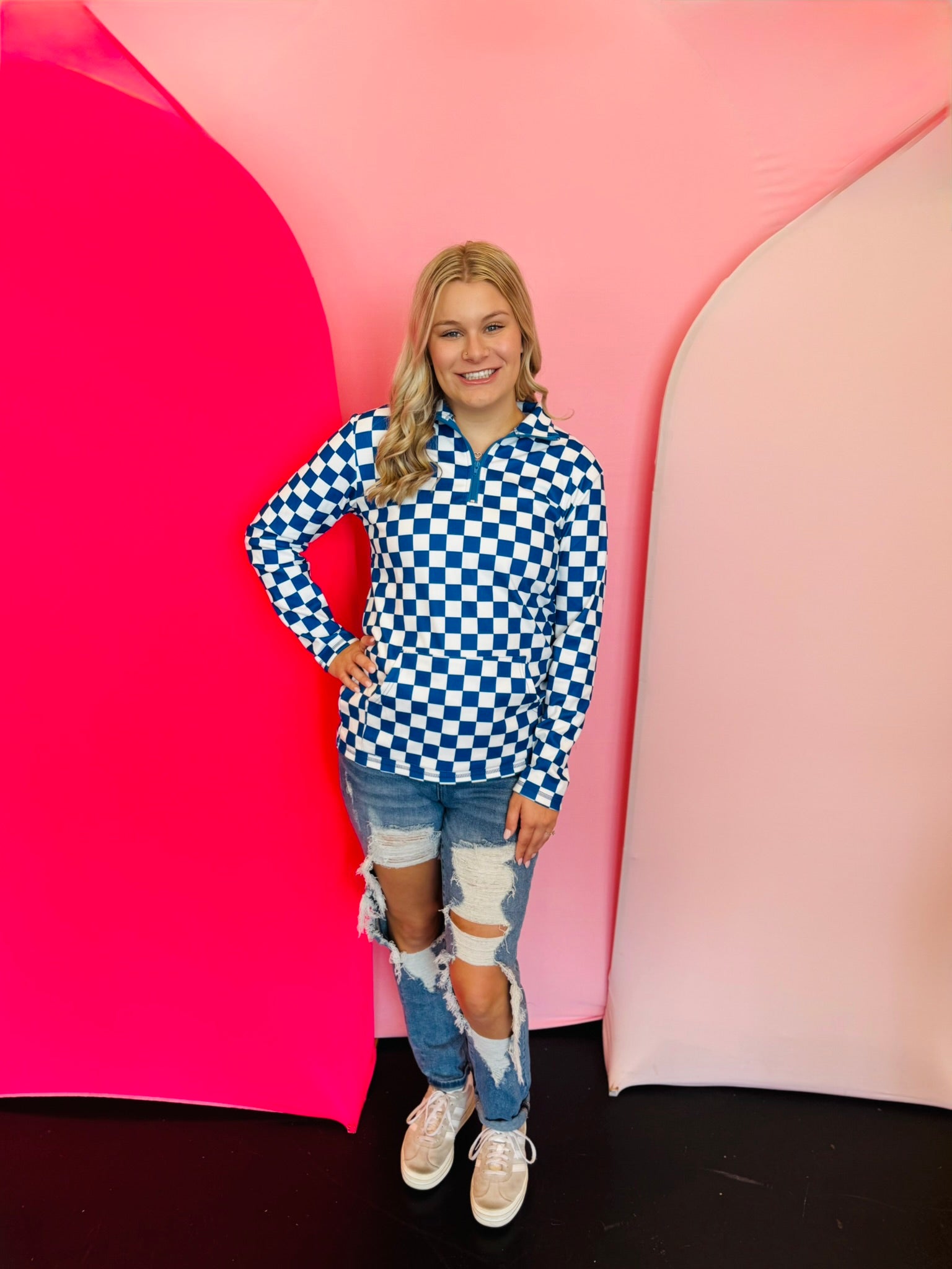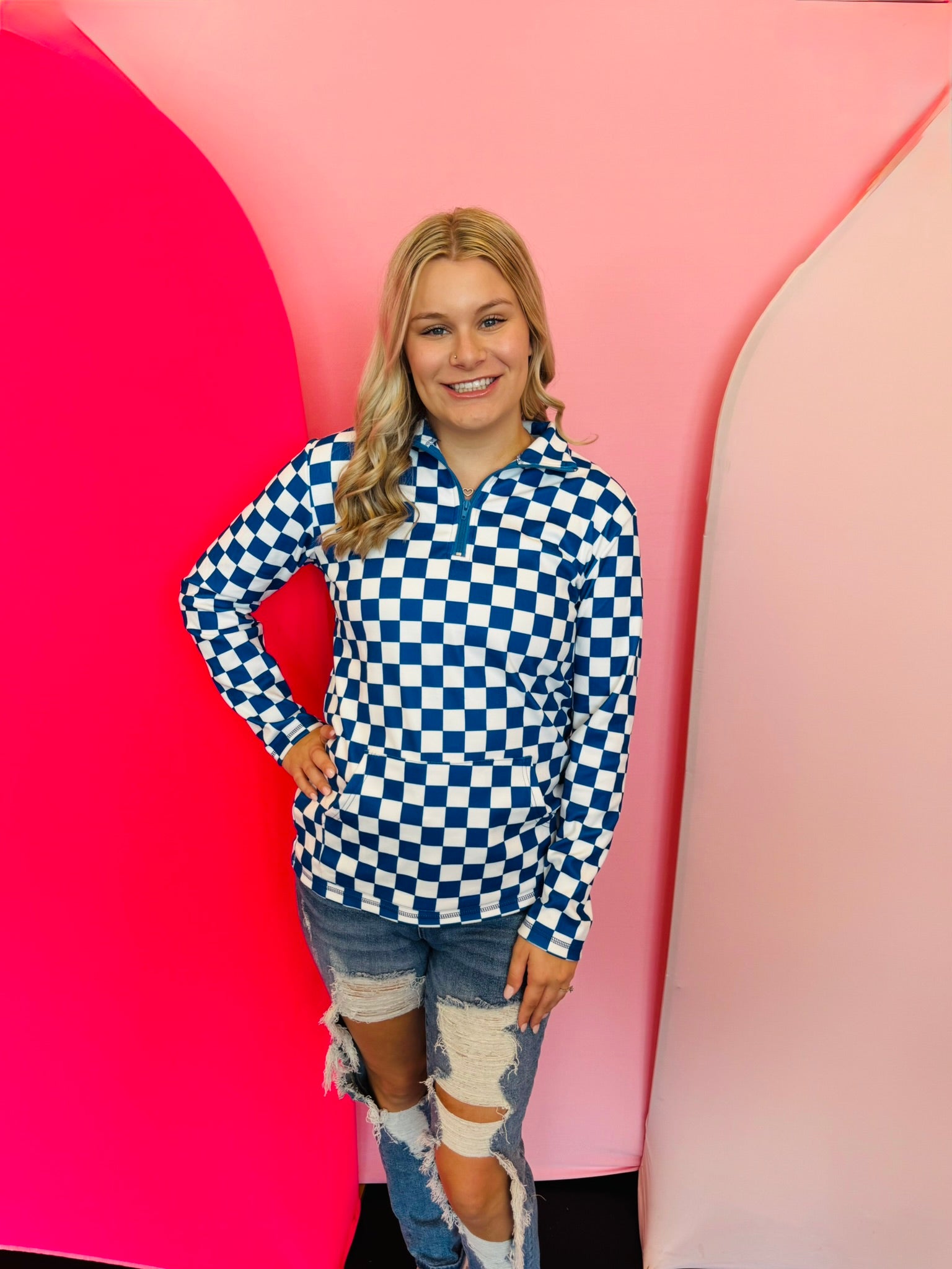 Blue & White Checkered Pep Rally Pullover