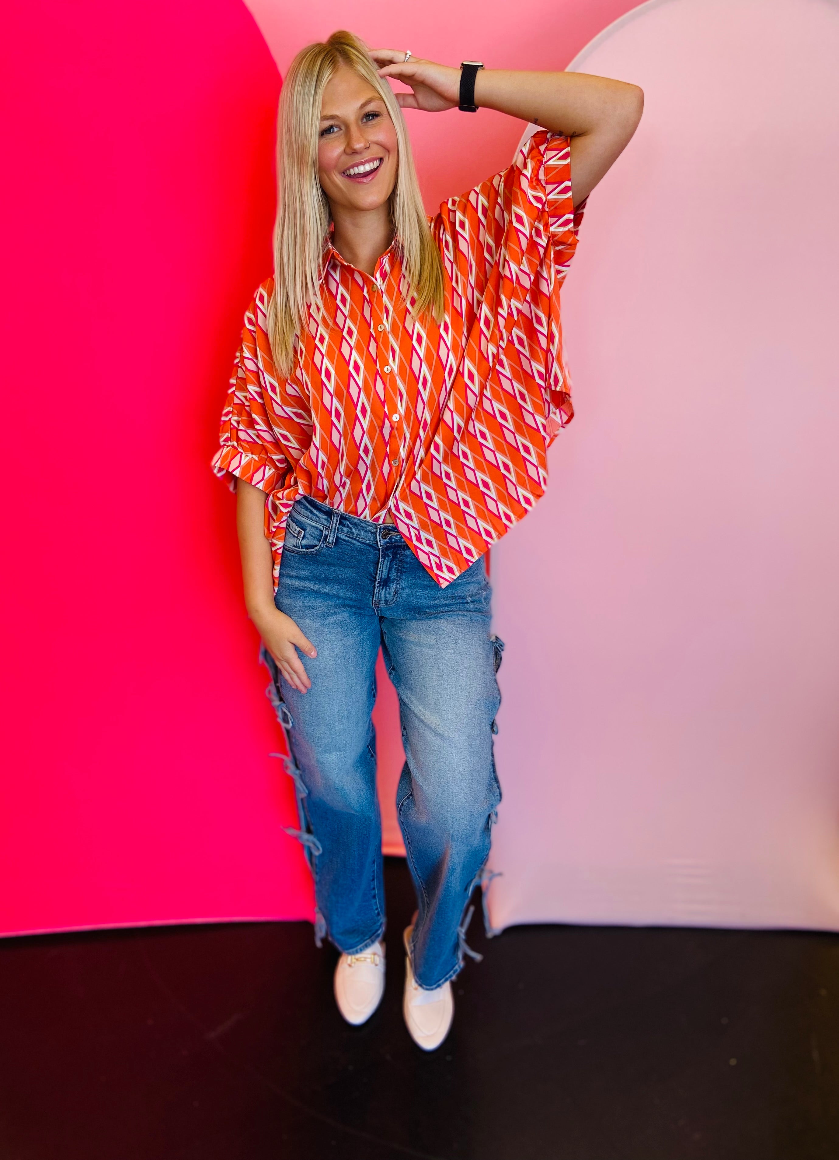 Tangerine Print Dolman Sleeve Top