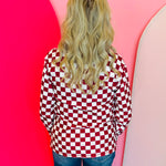 Refresh your everyday style with our Maroon & White Checkered Quarter-Zip Pullover, a cozy and eye-catching piece perfect for layering year-round. Featuring a bold maroon and white checkered pattern, this pullover adds a vibrant splash of color and personality to your casual wardrobe. The soft blend of cotton, rayon, and spandex creates a stretchy, relaxed fit that moves comfortably with you throughout the day. A collared neckline and quarter-zip front bring a sporty-chic touch, while the kangaroo front pocket offers both warmth and convenience. Whether you're out running errands, relaxing at home, or grabbing coffee with friends, this pullover delivers effortless comfort with standout style.