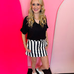 Designed with bold black and white vertical stripes, this skort creates a sleek, elongating silhouette while remaining easy to style for casual or dressed-up looks. The lightweight, breathable fabric keeps you cool and comfortable, while the stretchy back waistband provides a flexible, flattering fit.