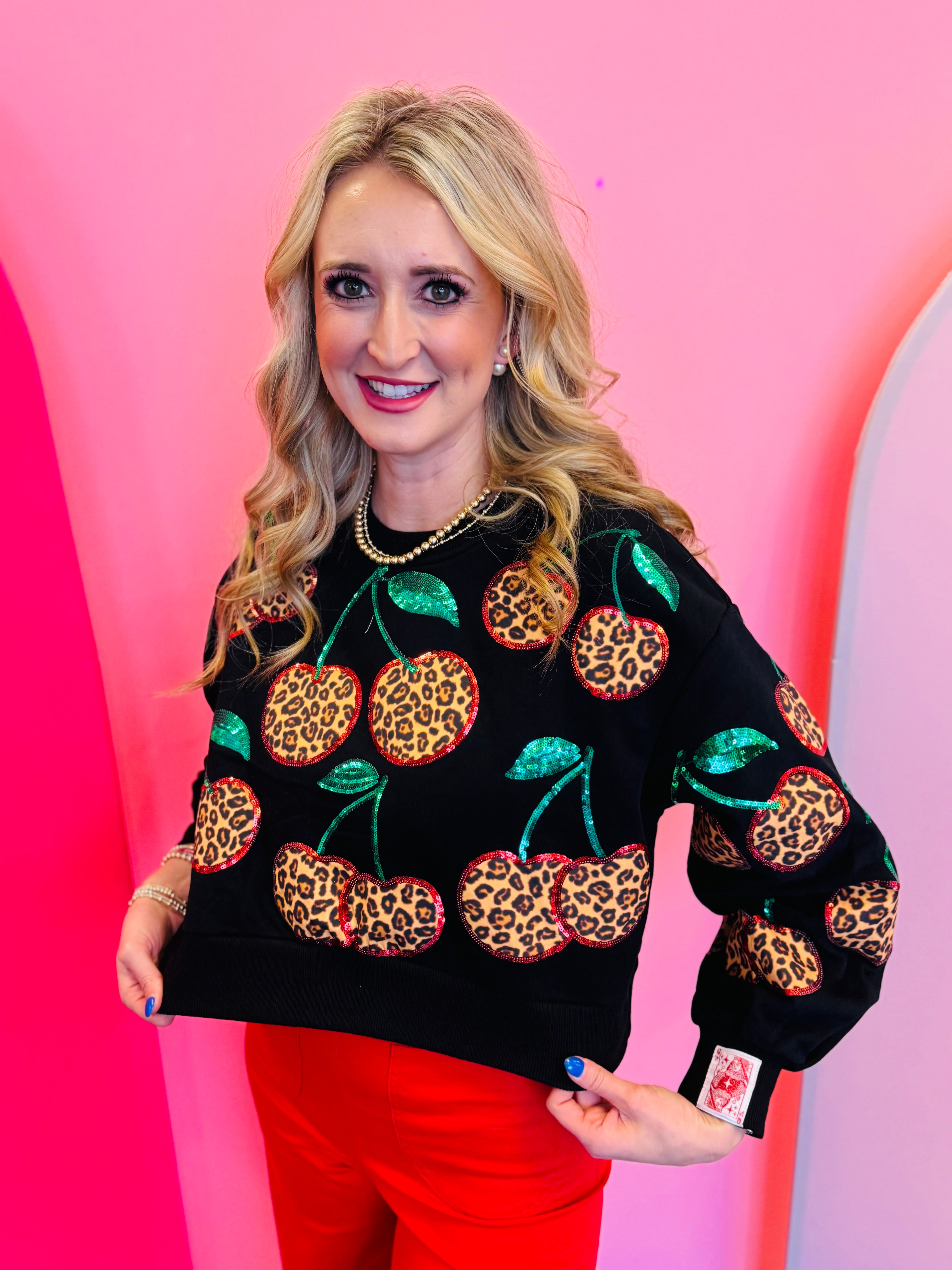 Queen Of Sparkles Black Leopard Cherry Sweatshirt