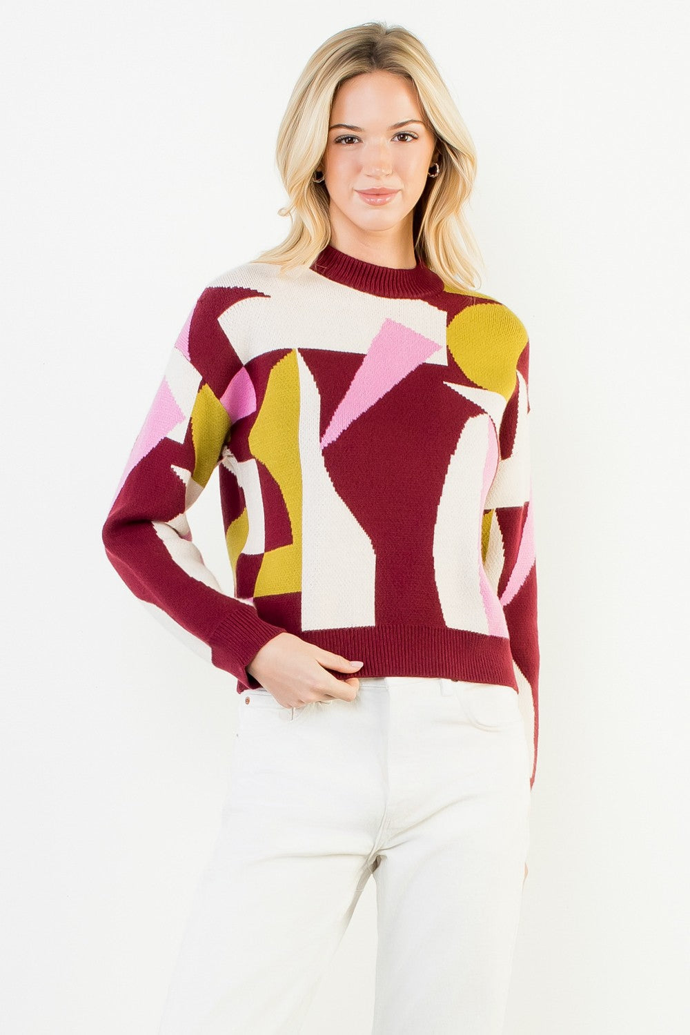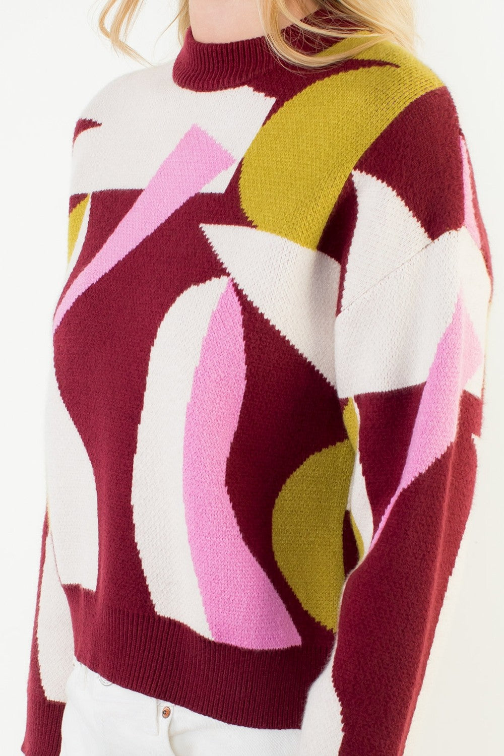 Abstract Bloom Mock Neck Sweater