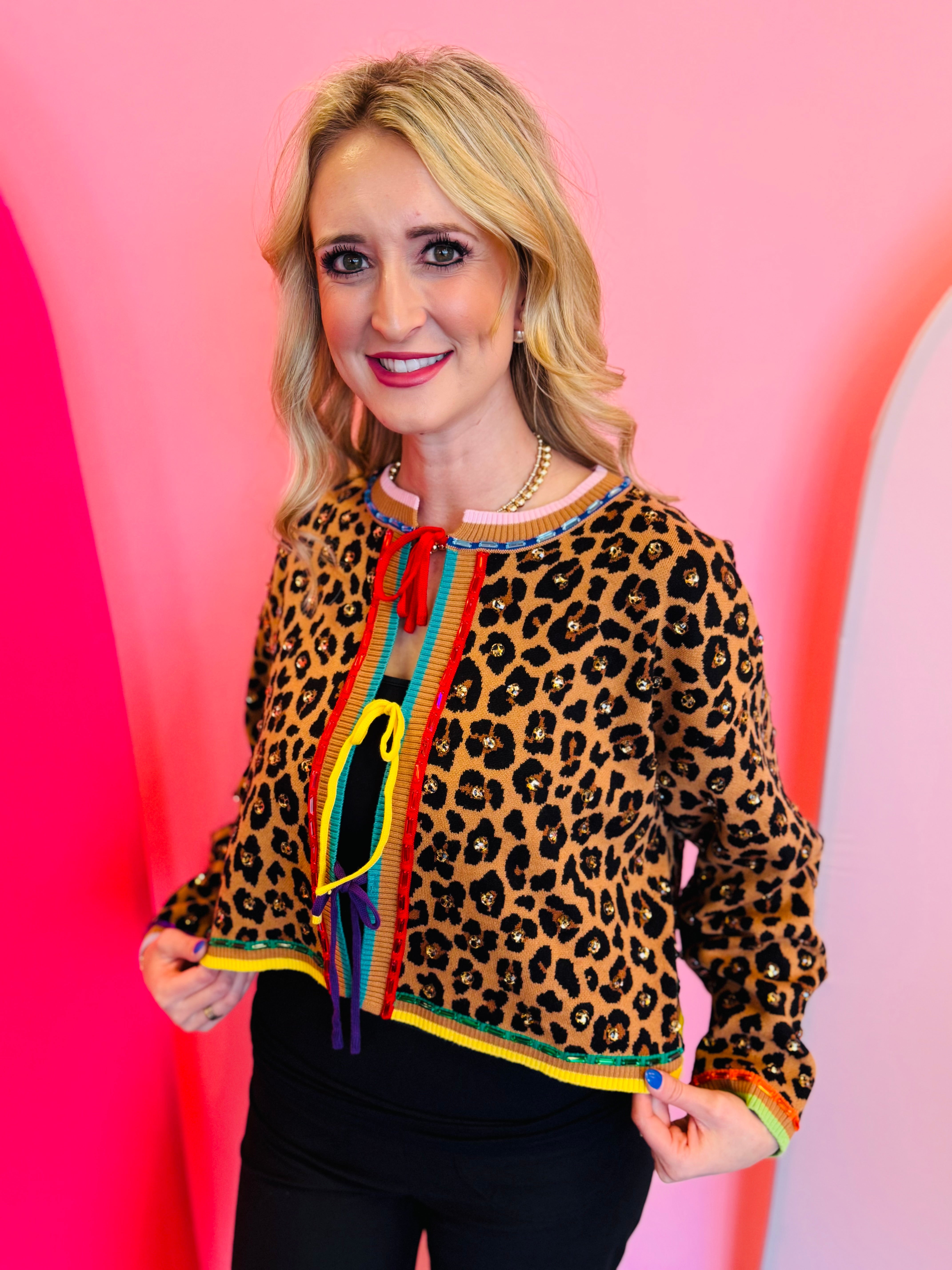 Queen Of Sparkles Leopard Multi Tie Rhinestone Sweater