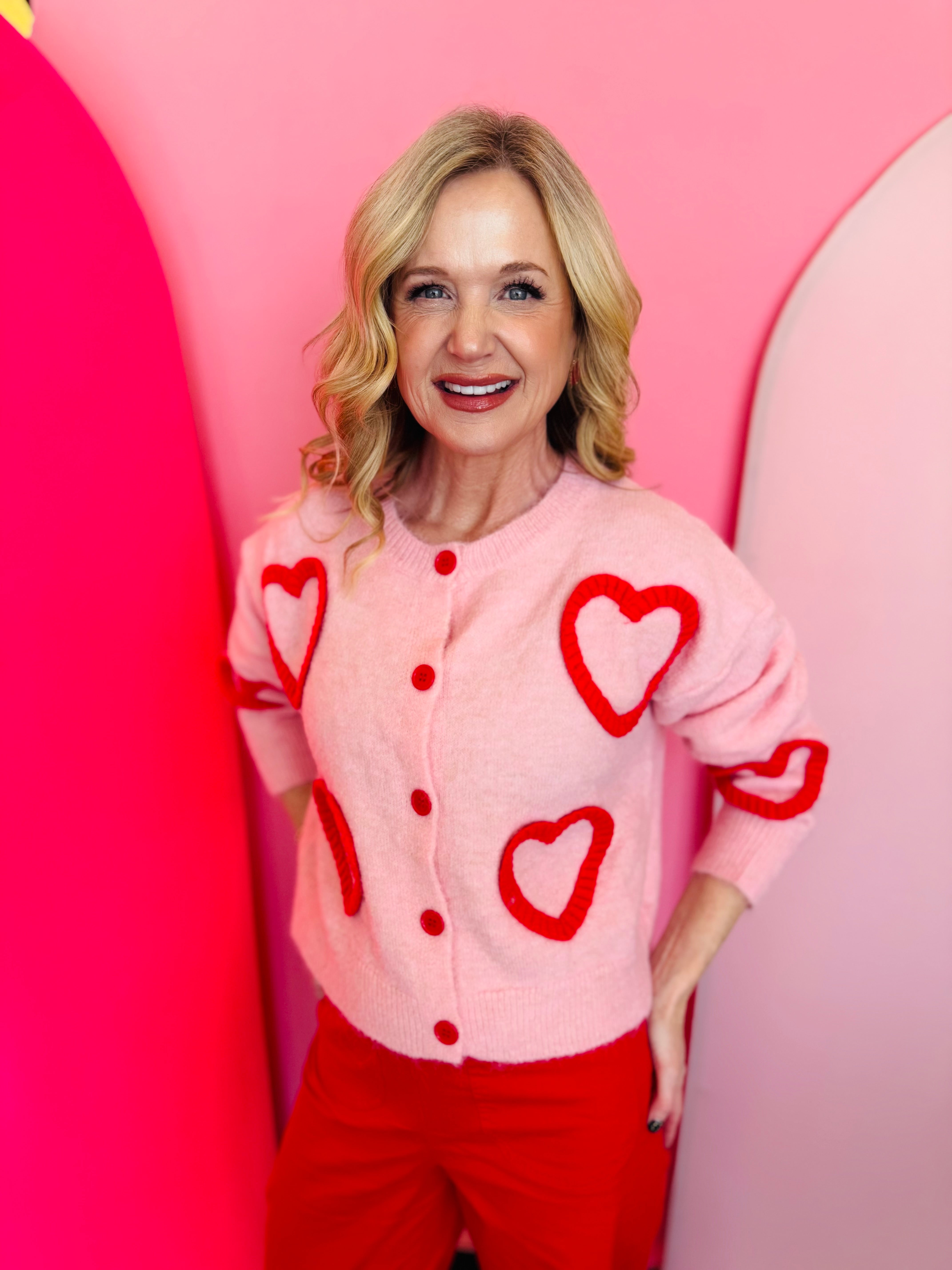 Fuzzy Heart Button-Up Cardigan