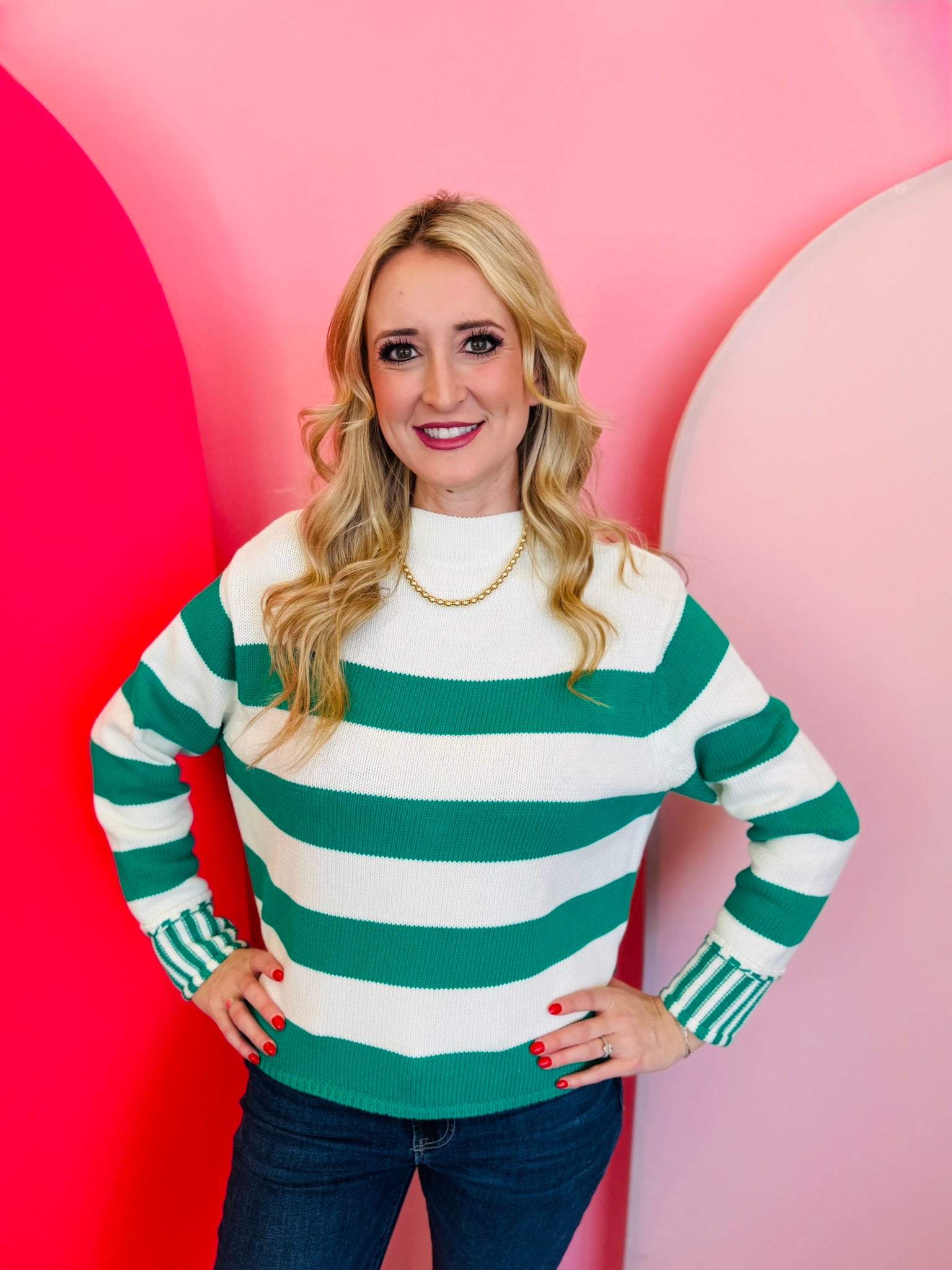 Kelly Green Striped Sweater