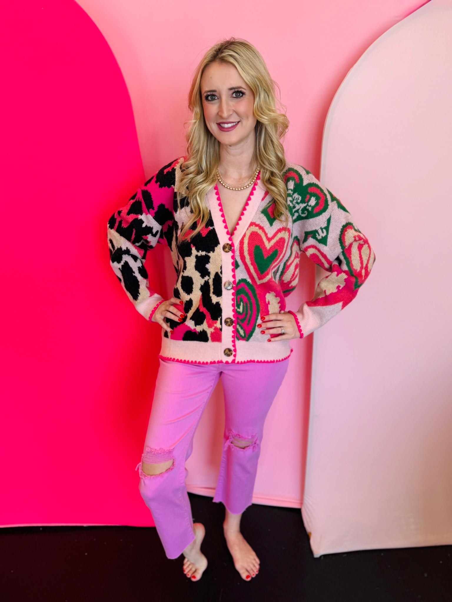 Heart & Leopard Oversized Sweater Cardigan