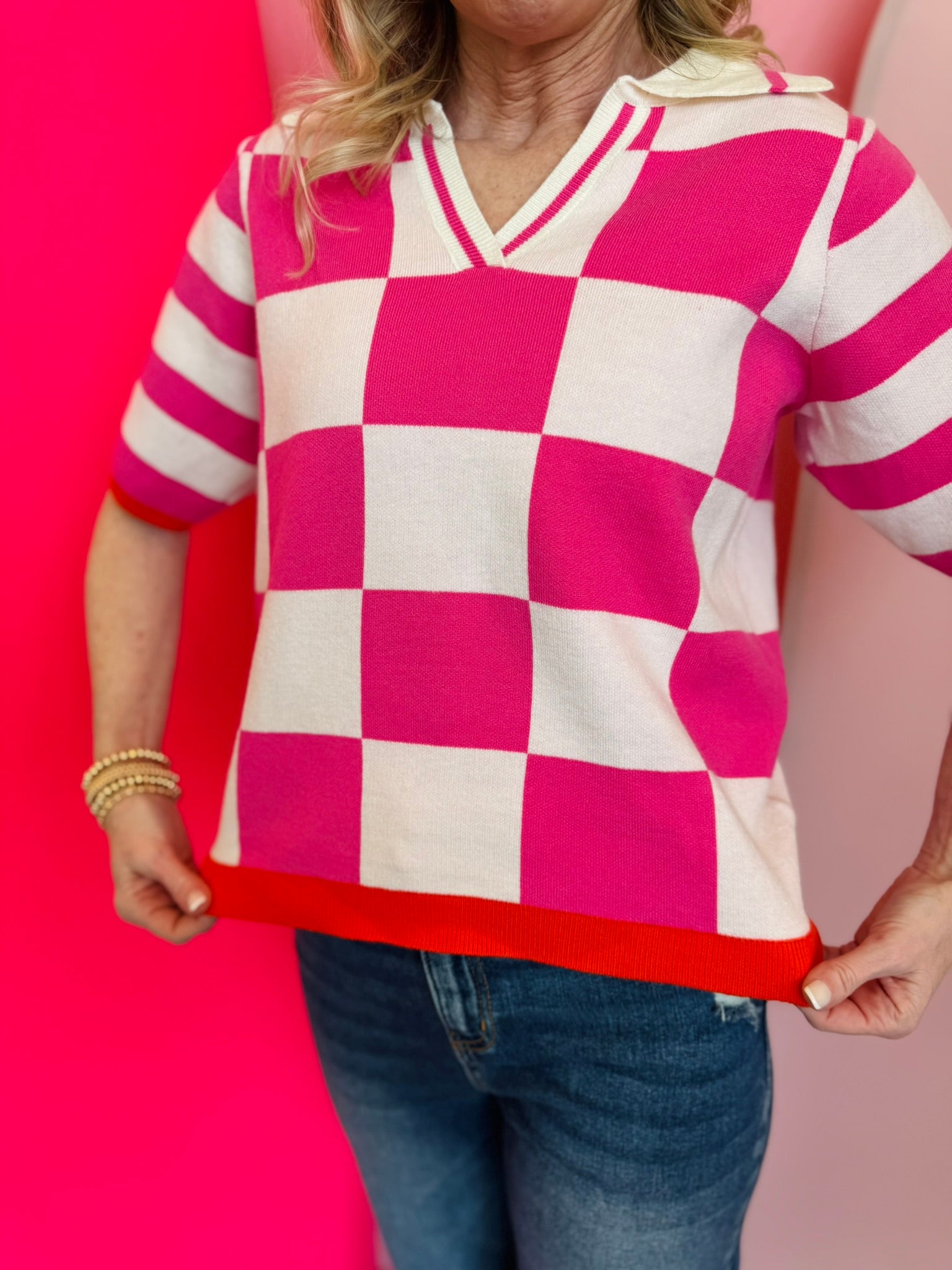 Queen of Sparkles Orange & White Checkered Knit Thanksgiving Food on Plate Cardigan