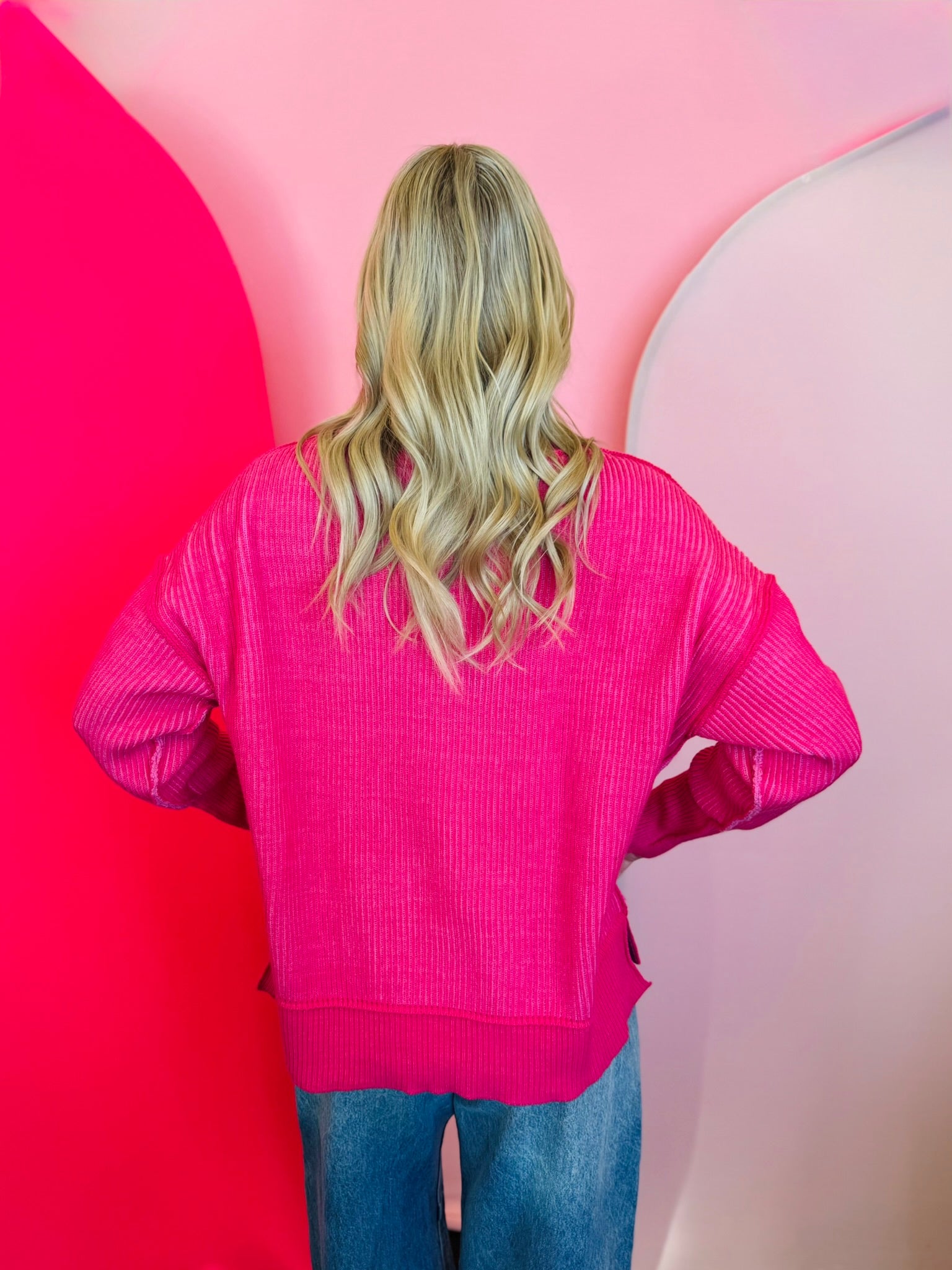 Hot Pink Two-Tone Sweater