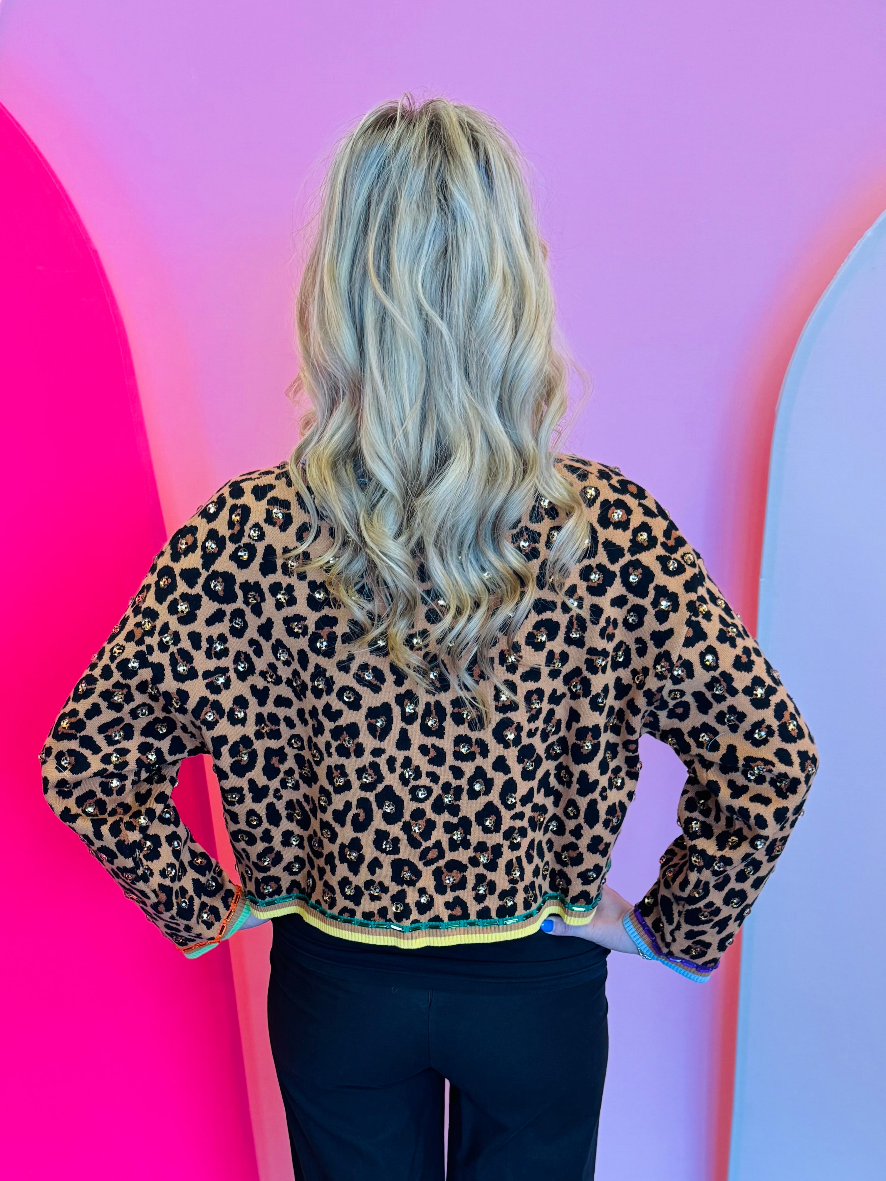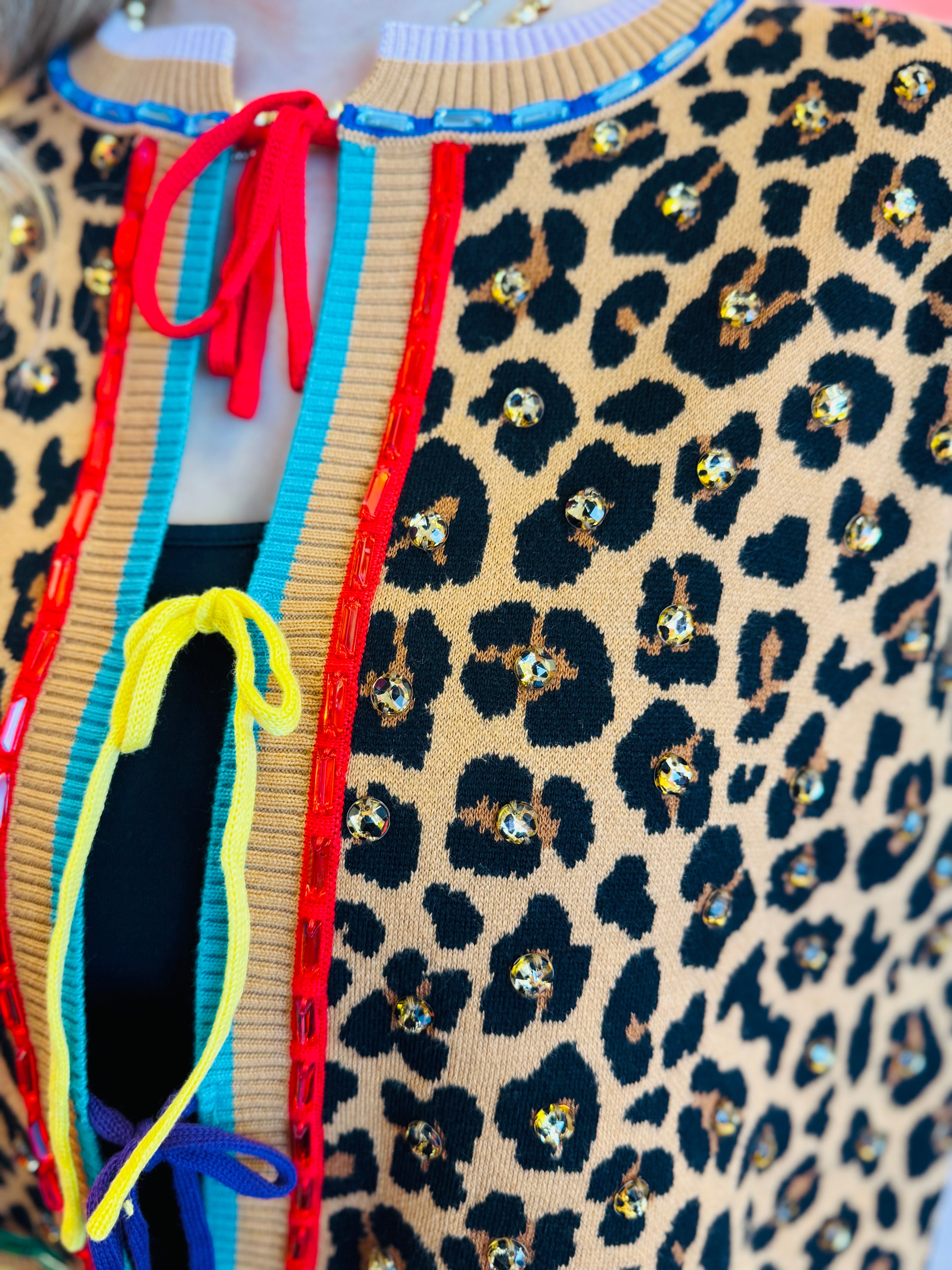 Queen Of Sparkles Leopard Multi Tie Rhinestone Sweater