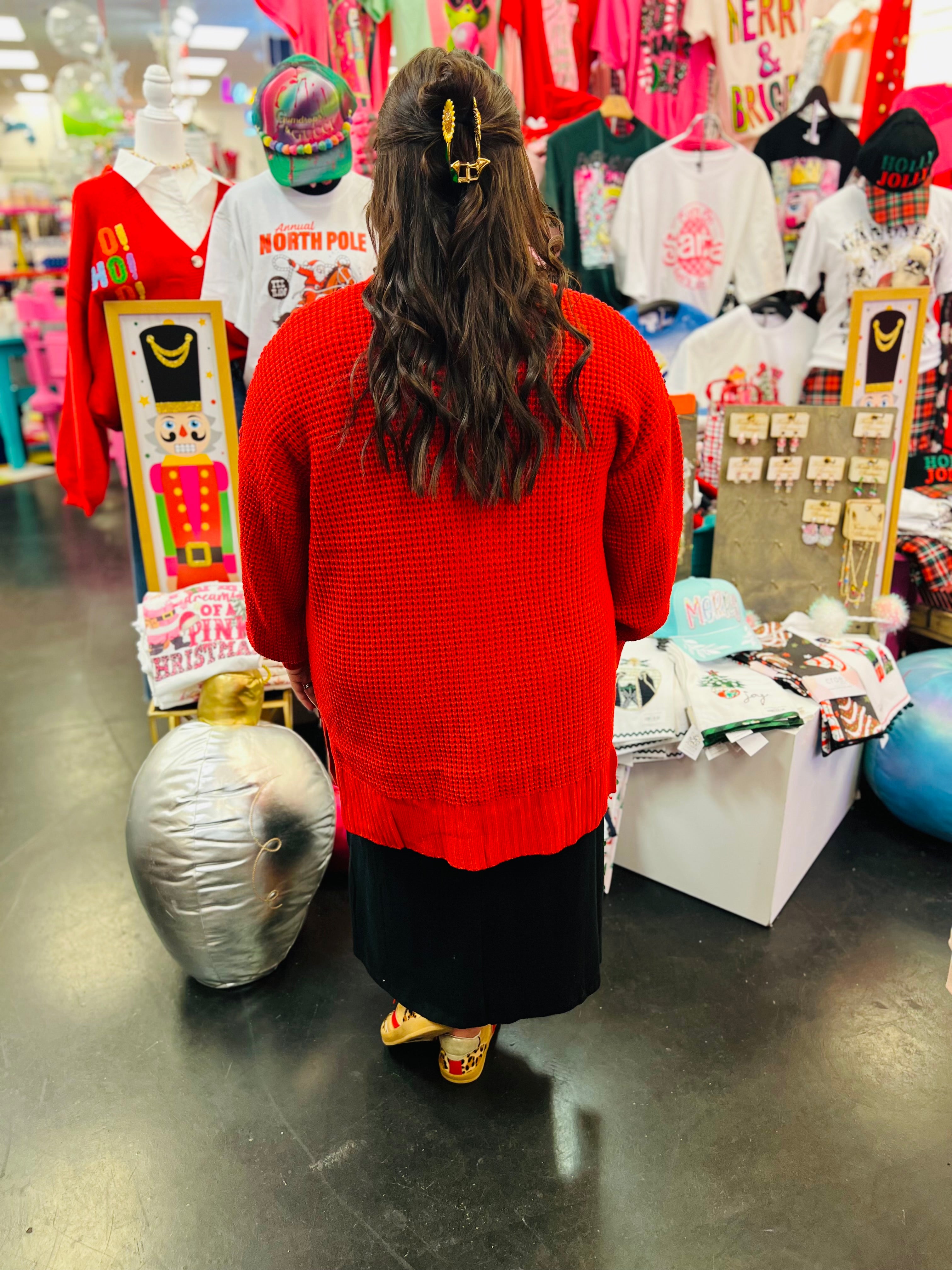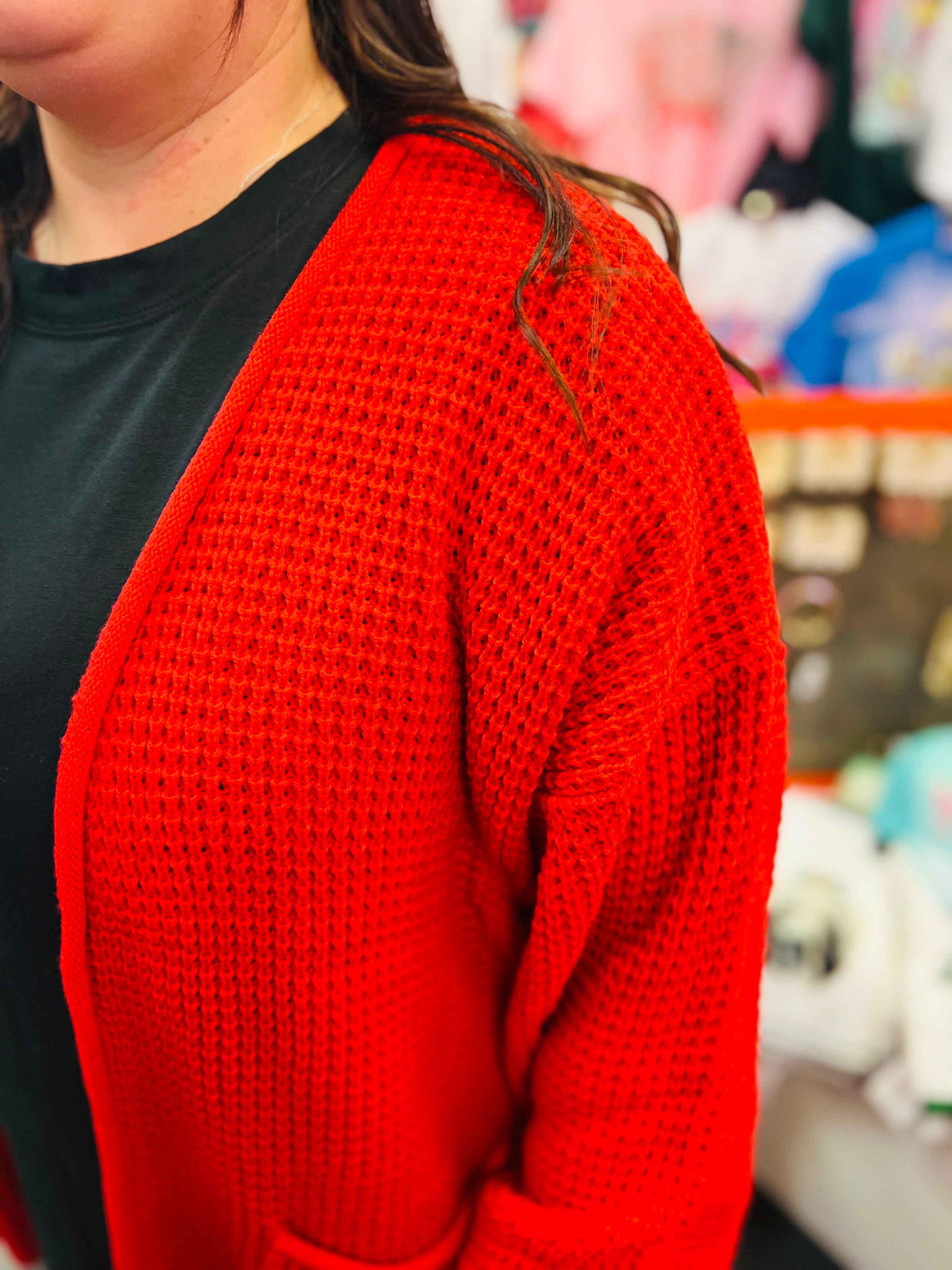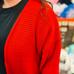 Ruby Red Waffle Knit Cardigan
