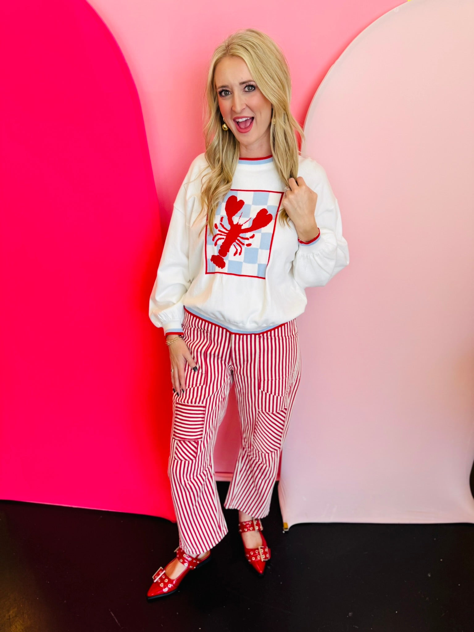Checkerboard Lobster Sweater Top
