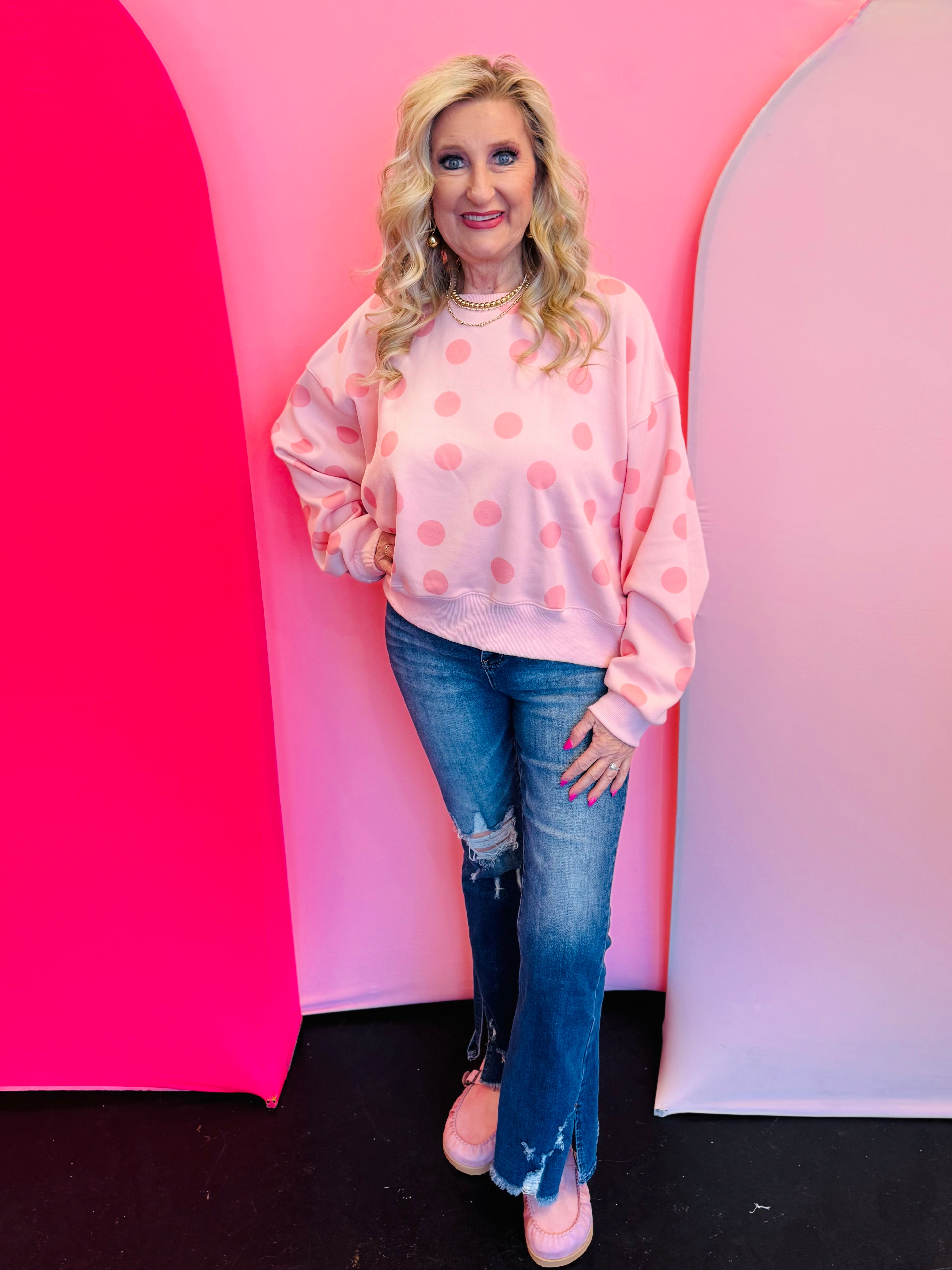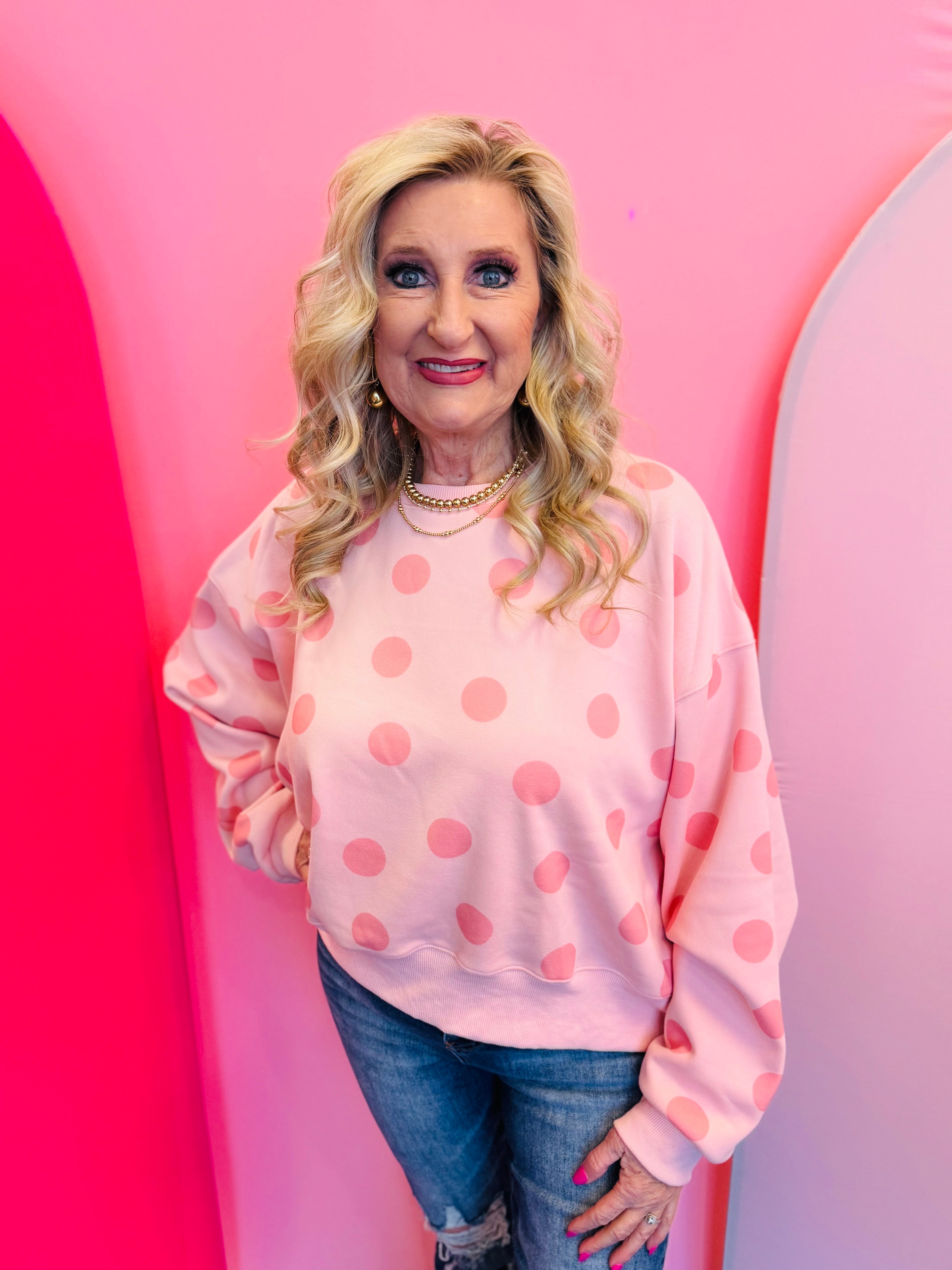 Pink Polka Dot Crop Sweatshirt